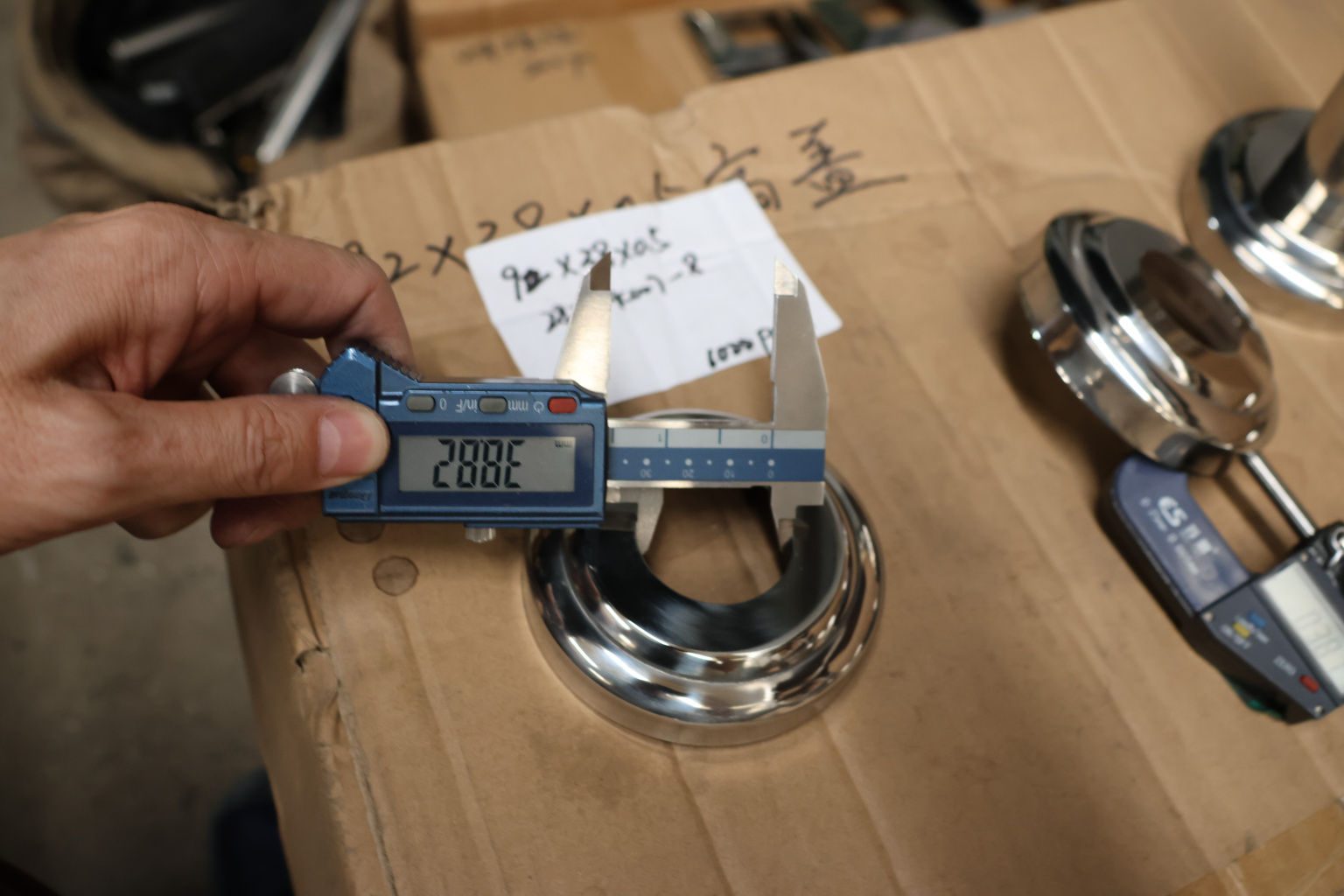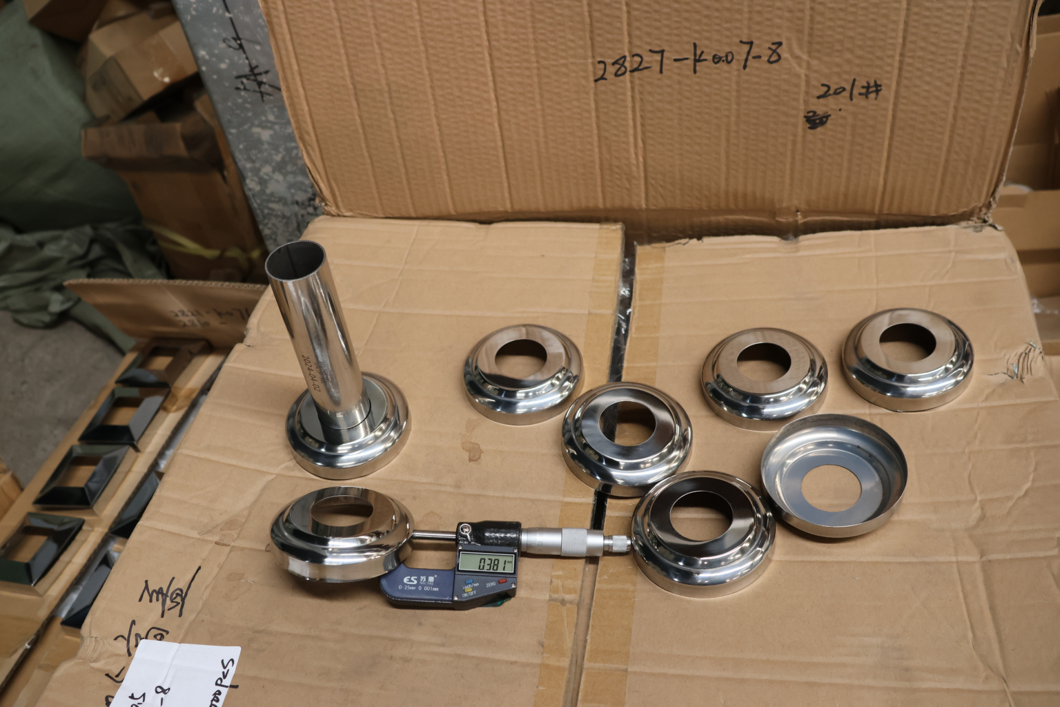 Низ стойки Ø38.1 мм, S=0,4 мм, внешний Ø90х12 мм, полированный 400#, марка стали- AISI 201