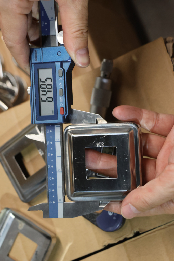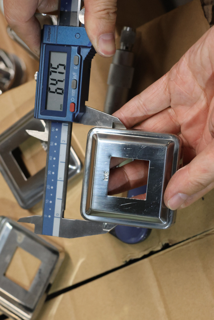 Низ стойки фигурный под трубу 25х25 мм, 66х66х0.4, высота 16 мм, полированный (AISI 304) k374