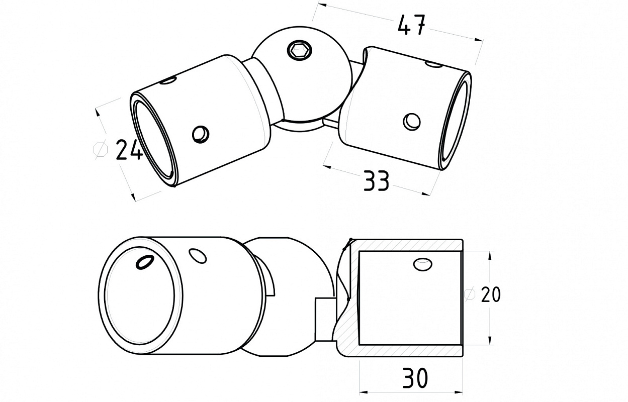 Соединитель трубы 19 мм, шарнирный, нержавеющая сталь AISI 304, полированная t915 PSS купить в Нижнем Новгороде