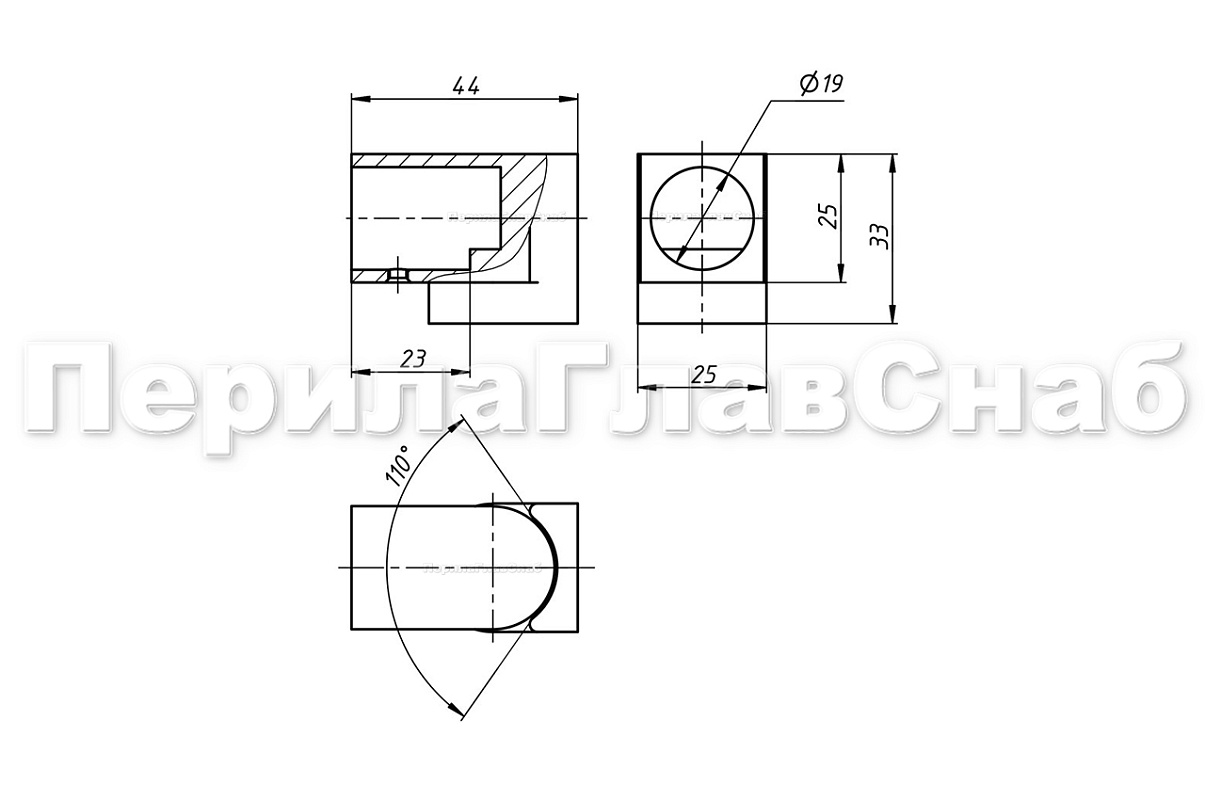 Крепежный элемент глухой шарнирный для трубы 19 мм, черный t911 BL купить в Нижнем Новгороде
