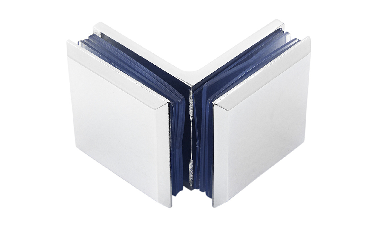 Коннектор для душевой кабины, стекло-стекло 90°, 45х45 мм. Материал - латунь-хром, поверхность - полированная