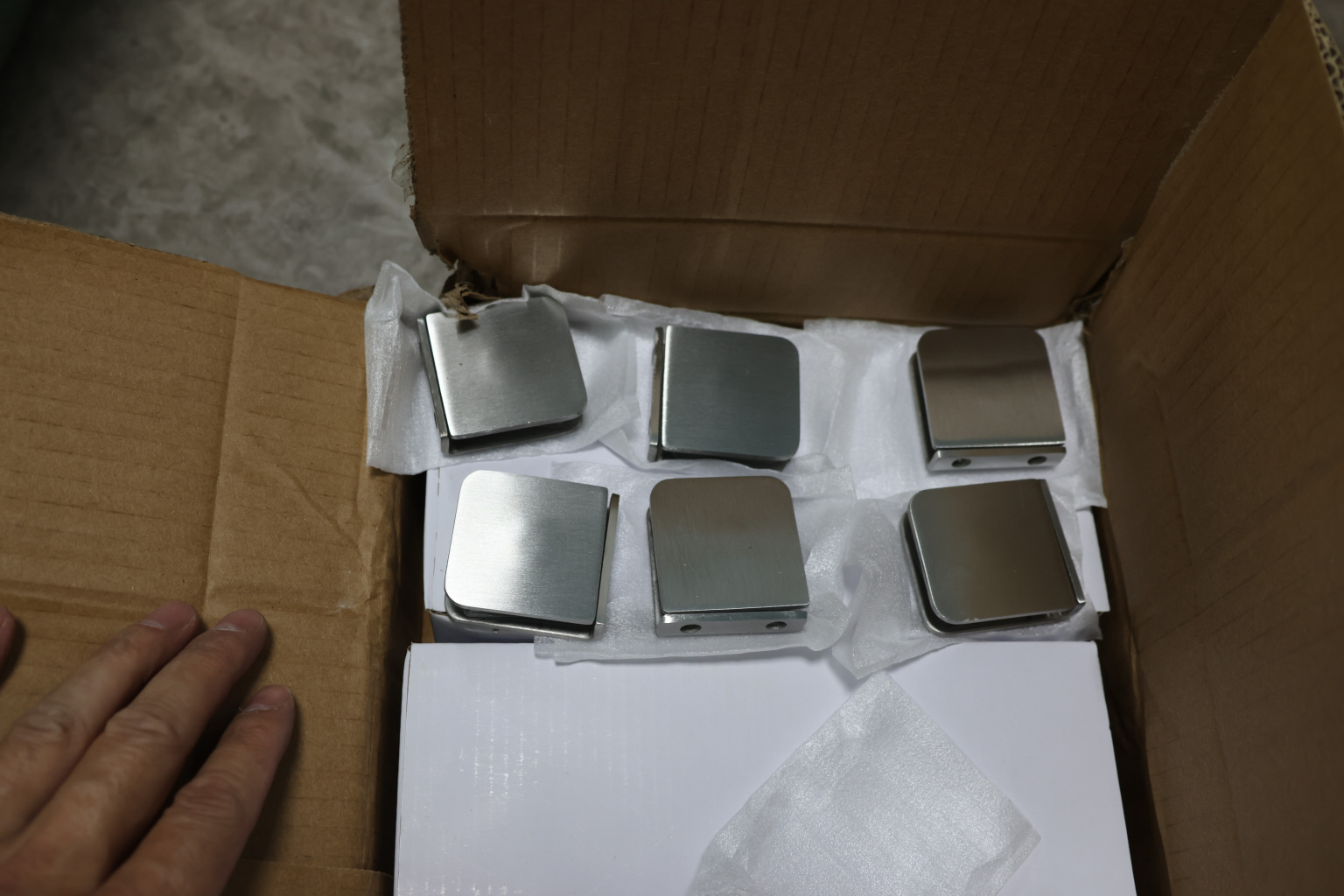 Коннектор для душевой кабины стена-стекло, 45х45, шлифованный, вырез 61. Марка стали - AISI 304