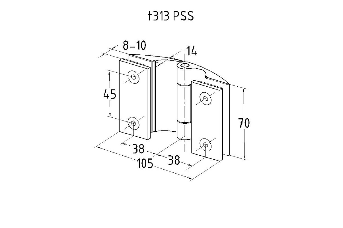 Петля душевая, стекло-стекло 180°, без реза, нерж, полированная t313 PSS