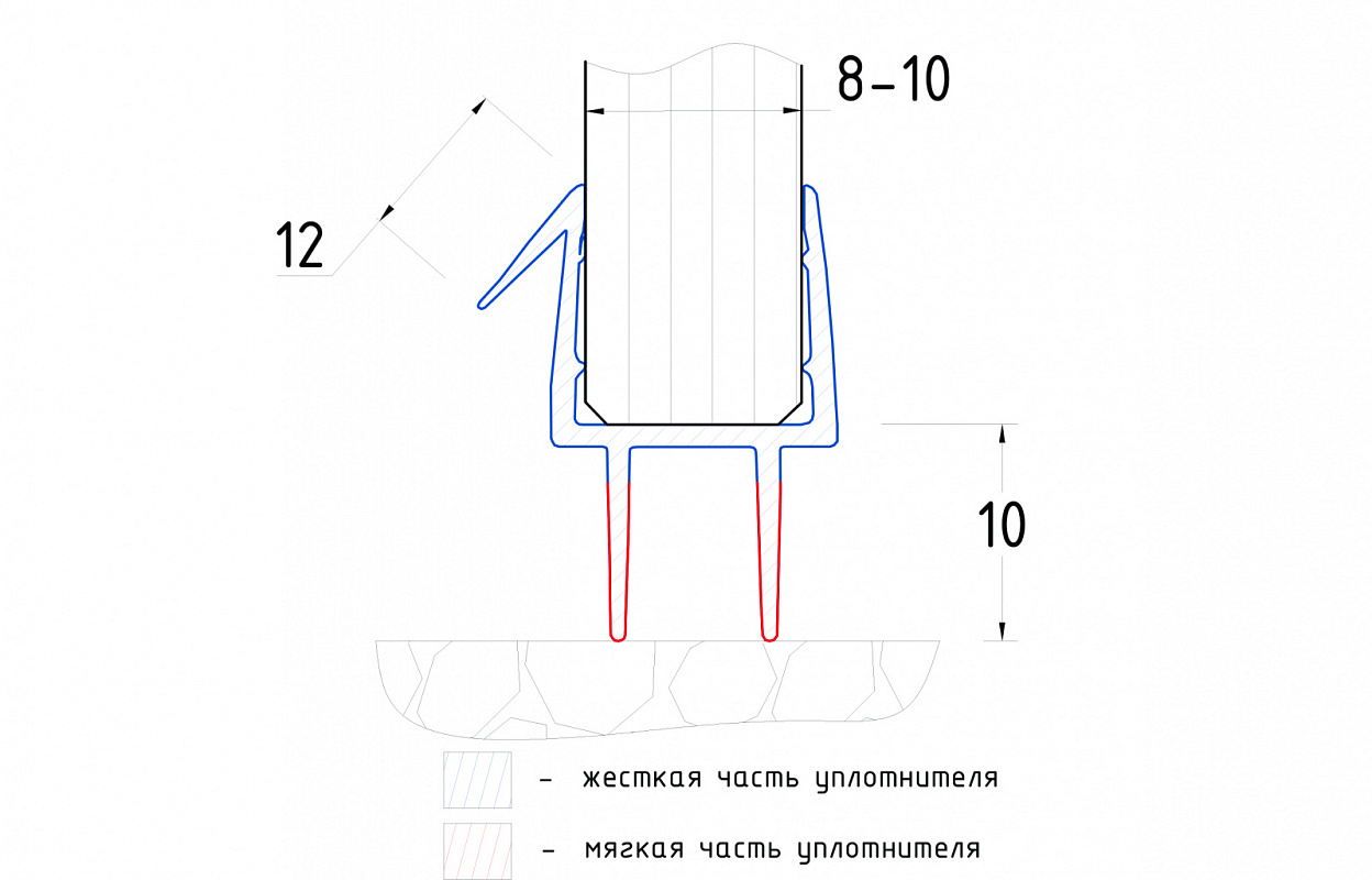 Монтируется по всему периметру стеклянного листа. Позволяет герметично соединять стеклянные панели со стеной, что гарантируют отсутствие течи в вертикальной части конструкции.