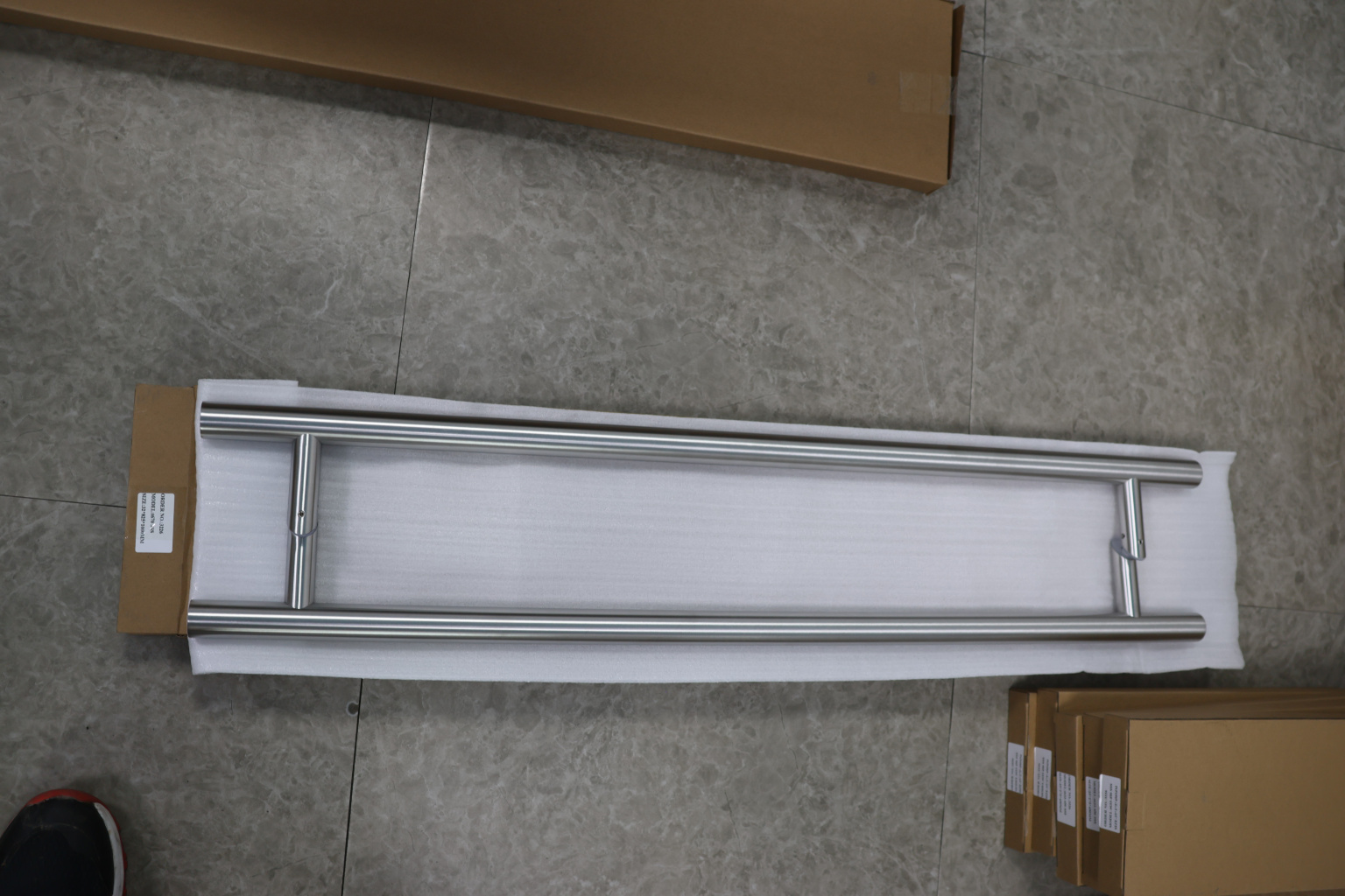 Ручка для стеклянной двери двухсторонняя 32х825х1000 для стекла 10-12 мм, угловая, матовая, марка стали- AISI 304