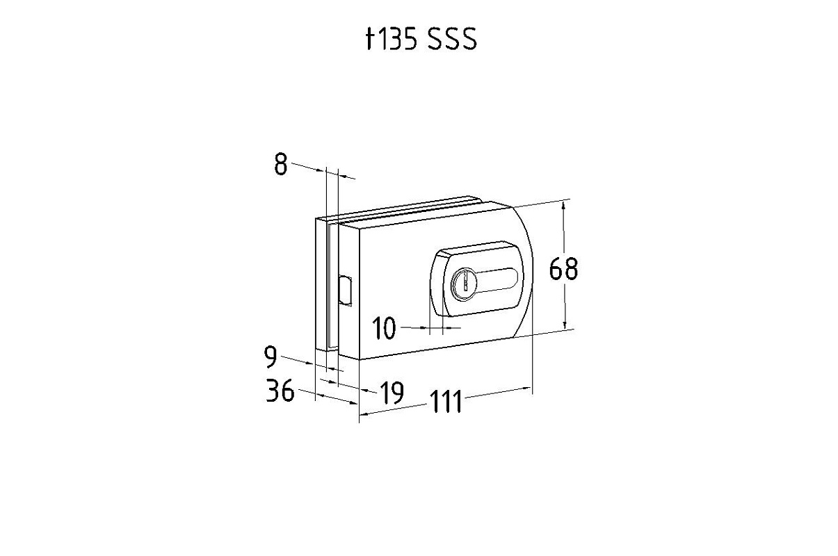 Замок для стеклянной двери вертикальный с ответной частью на стену и пол, шлифованный, вырез 15 t135 SSS