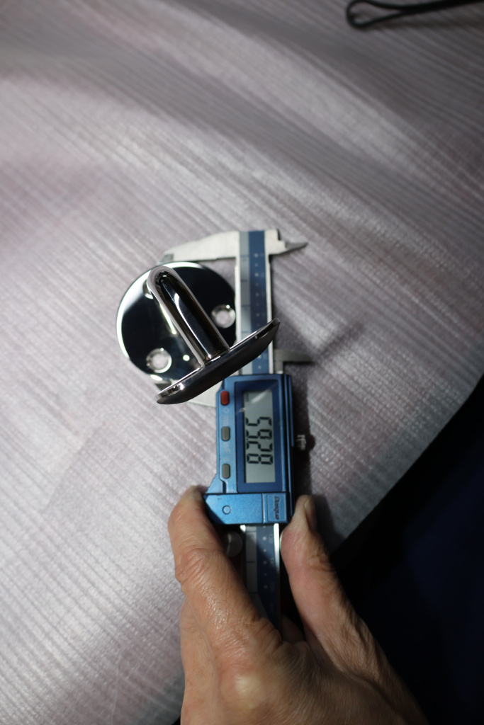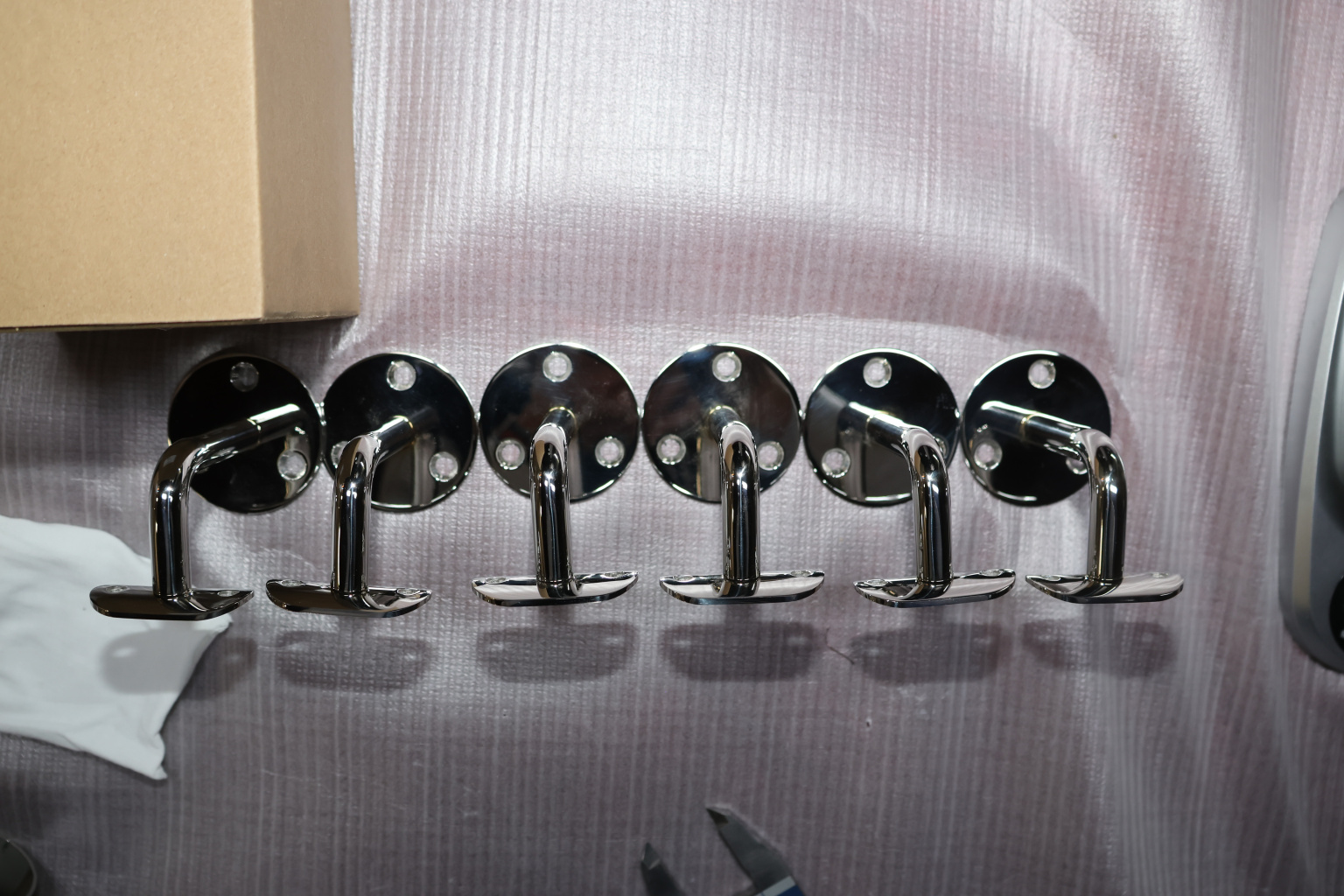 Благодаря оптимально подобранному выносу, пристенный поручень достаточно удален от поверхности стены, чтобы не задевать скользящей вдоль трубы поручня рукой идущего по лестнице человека. Но при этом поручень располагается близко к стене, дабы не сужать свободное пространство полезной ширины лестничного марша. Габариты: вынос 70х45 мм, Ø60х3мм, ложемент 25 х 45 х 2 мм