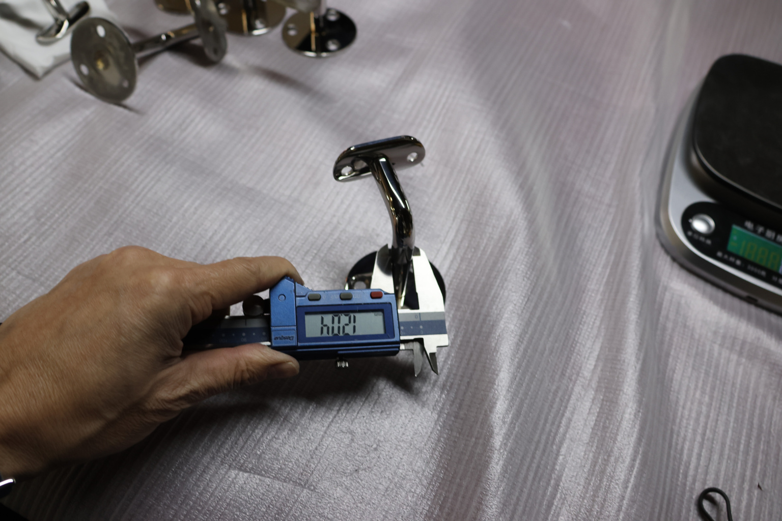 Держатель поручня к стеклу, вынос 60х70, Ø43х5 мм для стекла 10-12мм, (AISI 304) k008-5