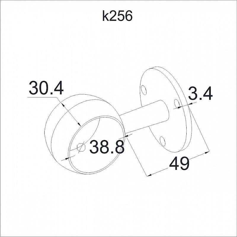 Держатель выносной с обхватом для трубы диаметром 38.1 мм. Три отверстия под саморез с потайной головкой 5.8 мм. Деталь полированная, сварная. Марка стали детали - AISI 304