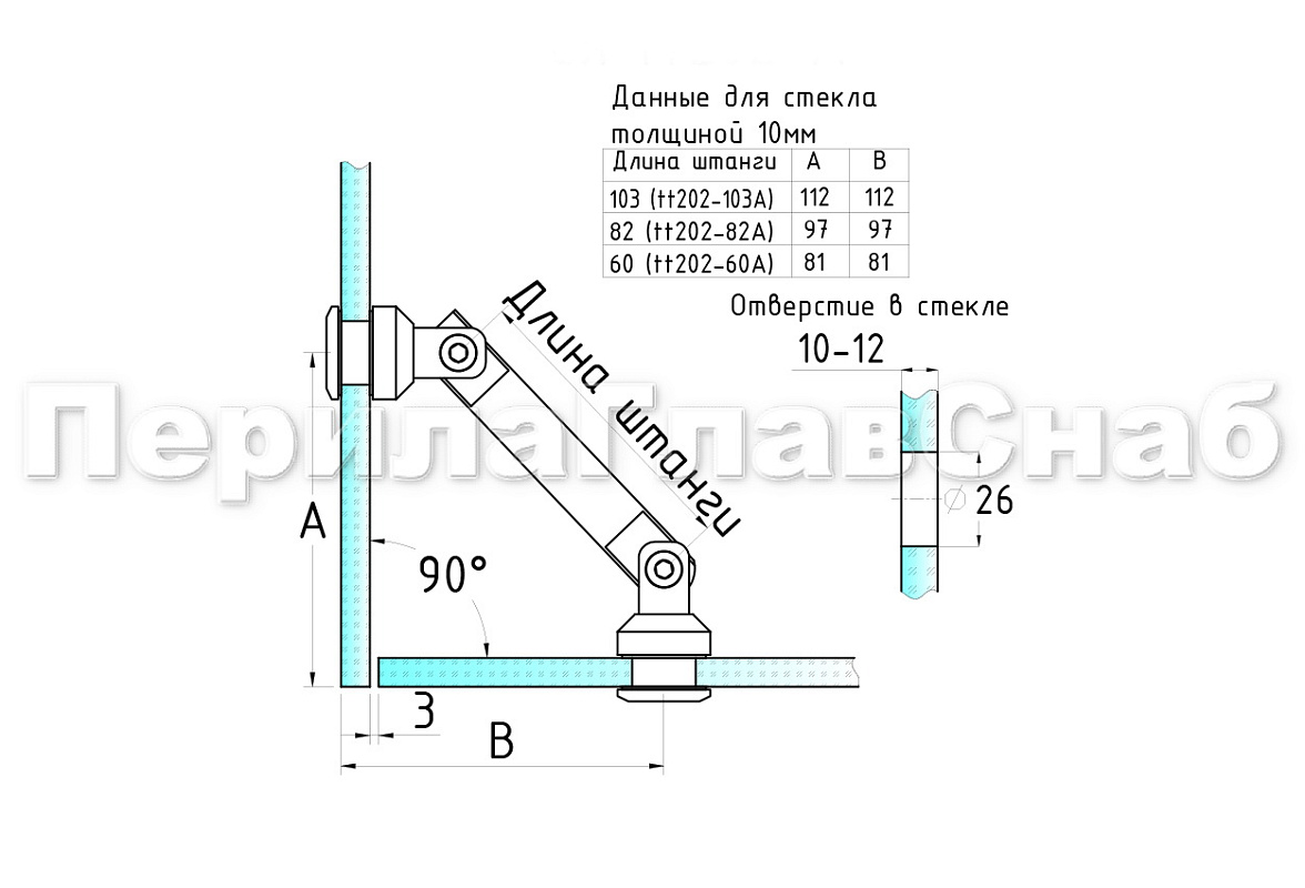 Крепление стекло-стекло, штанга 82 мм, без зенковки tt202-82А SSS