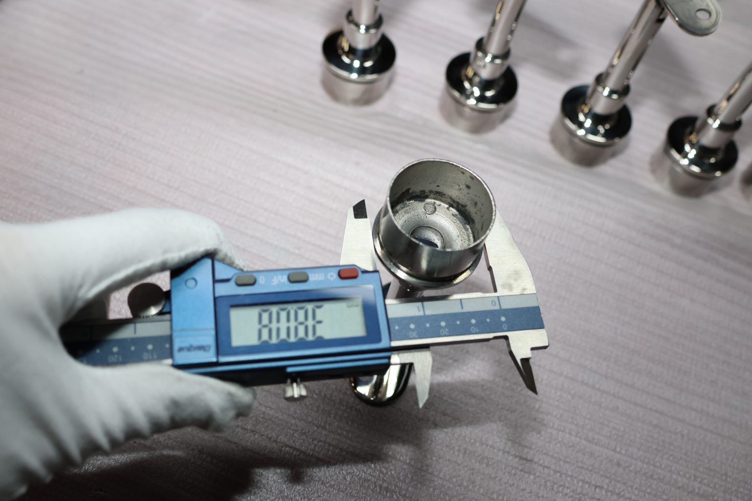 Наконечник регулируемый по высоте на стойку Ø38.1х1.5 мм, с регулируемым ложементом под поручень Ø50.8, литой, полированный, нержавеющий (AISI 304) k317