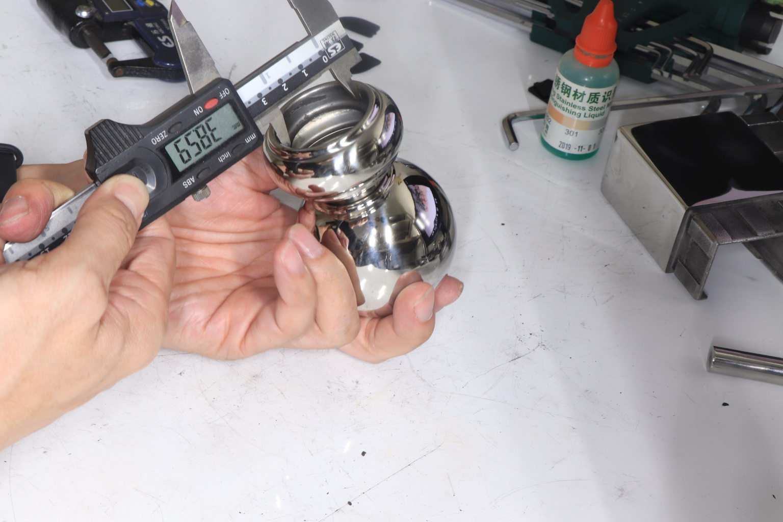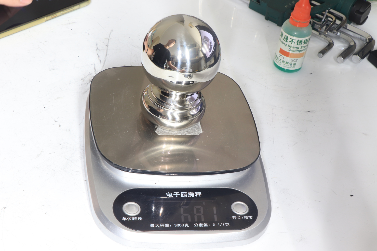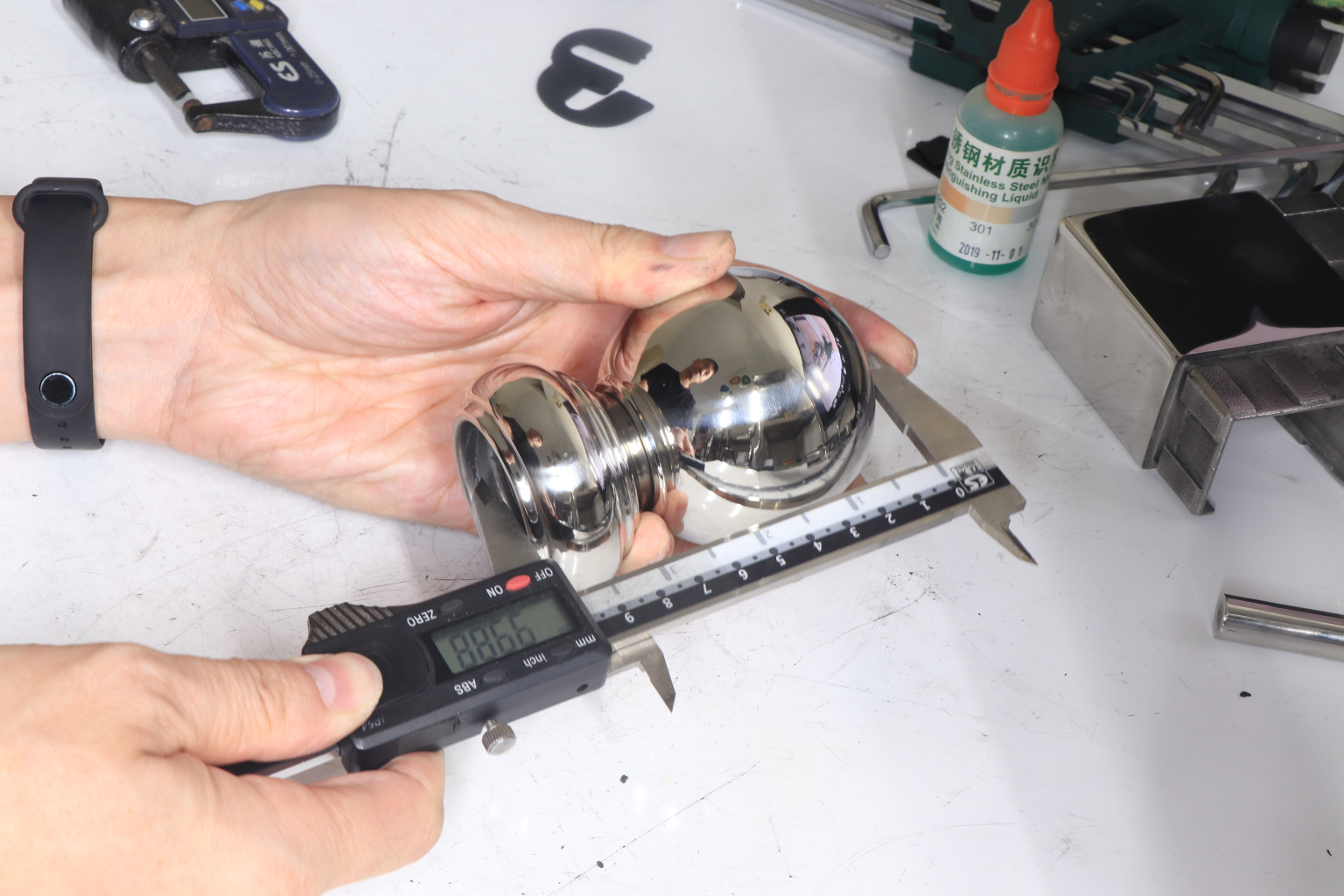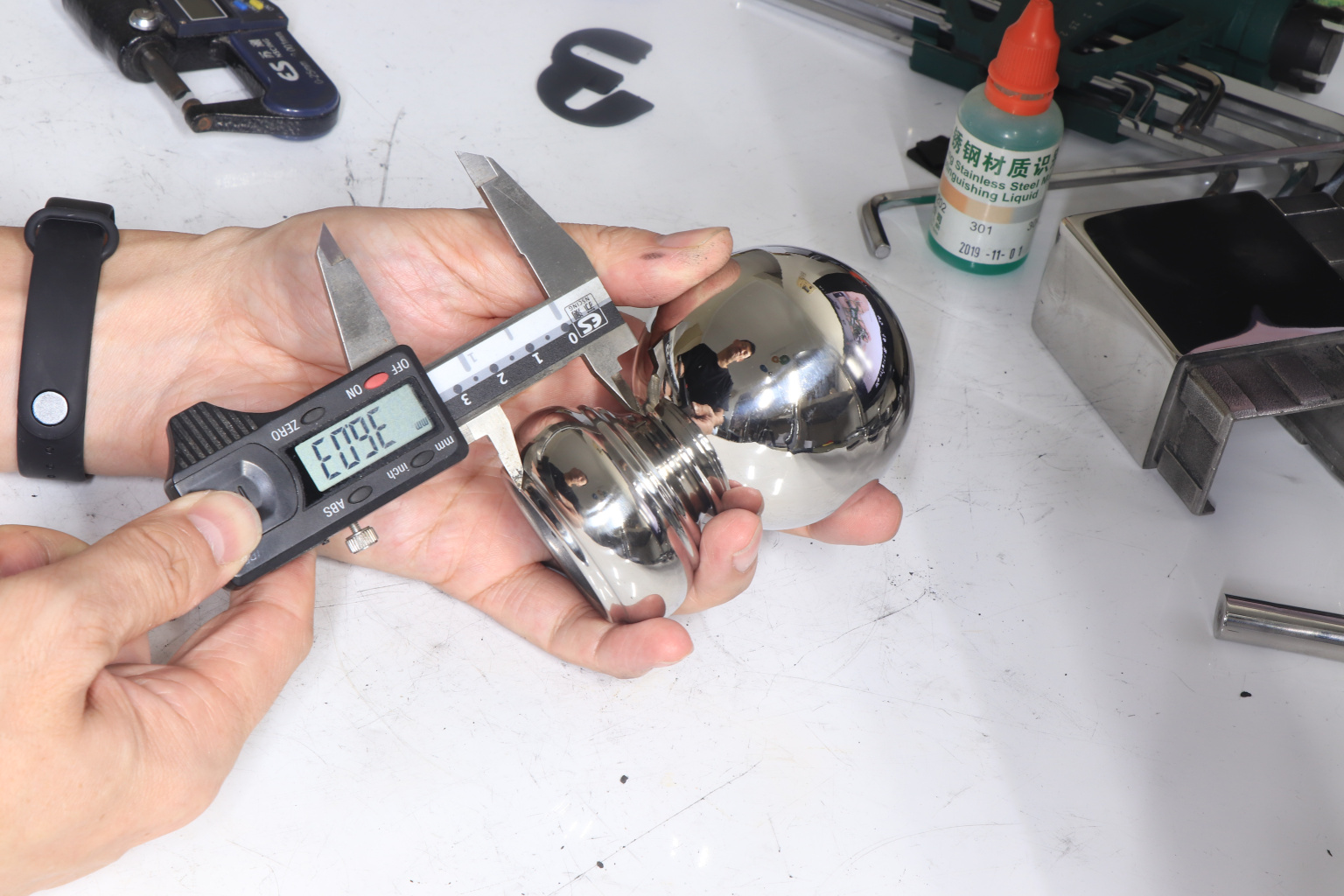 Наконечник шар на стойку диаметром 38.1 мм. Деталь штампованная, полированная, 400 Grit. Материал детали - AISI 201