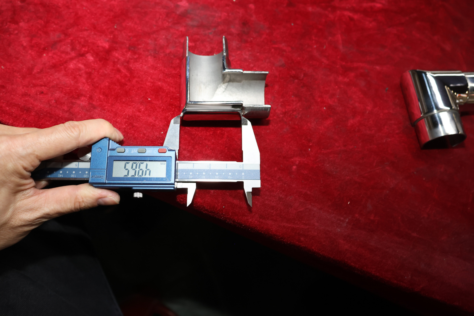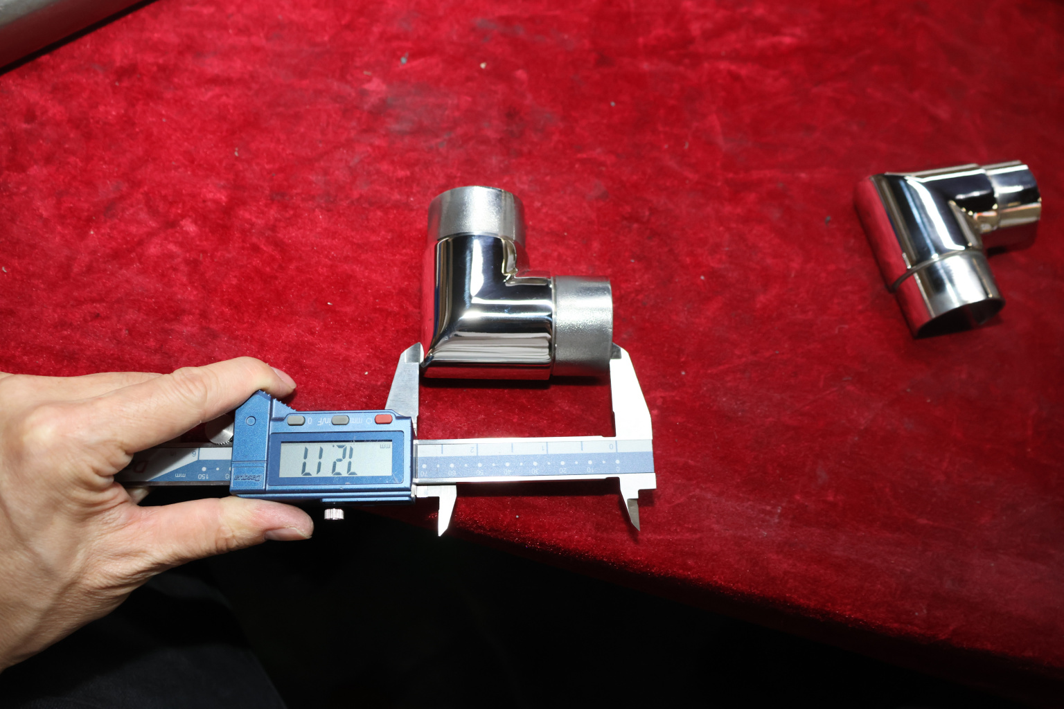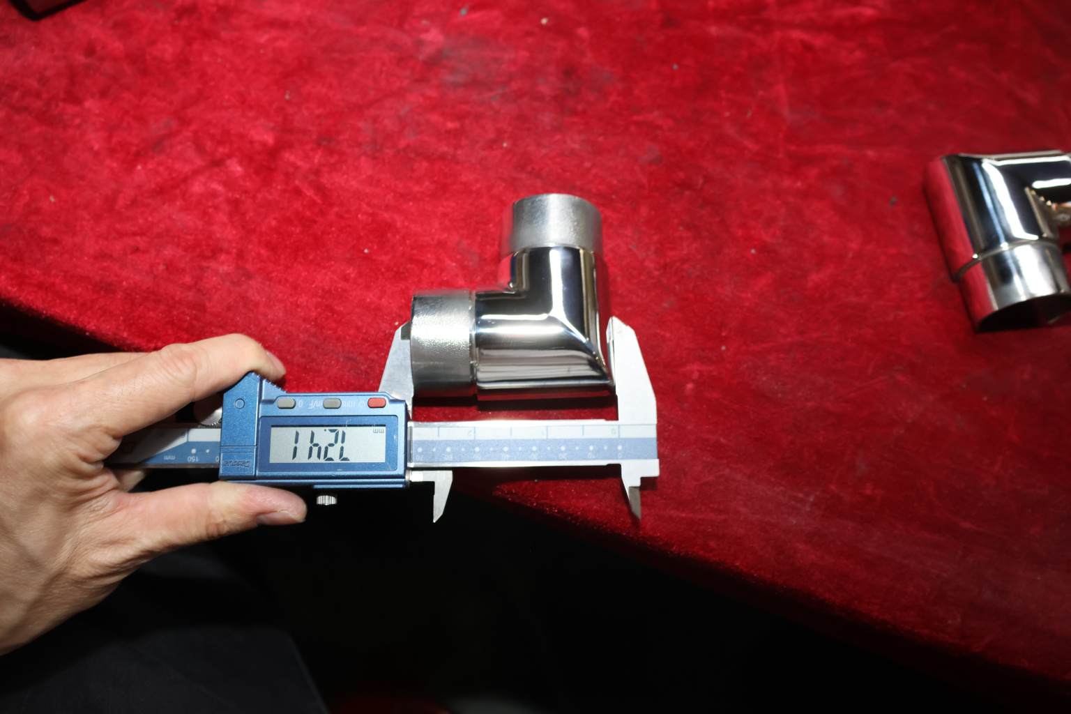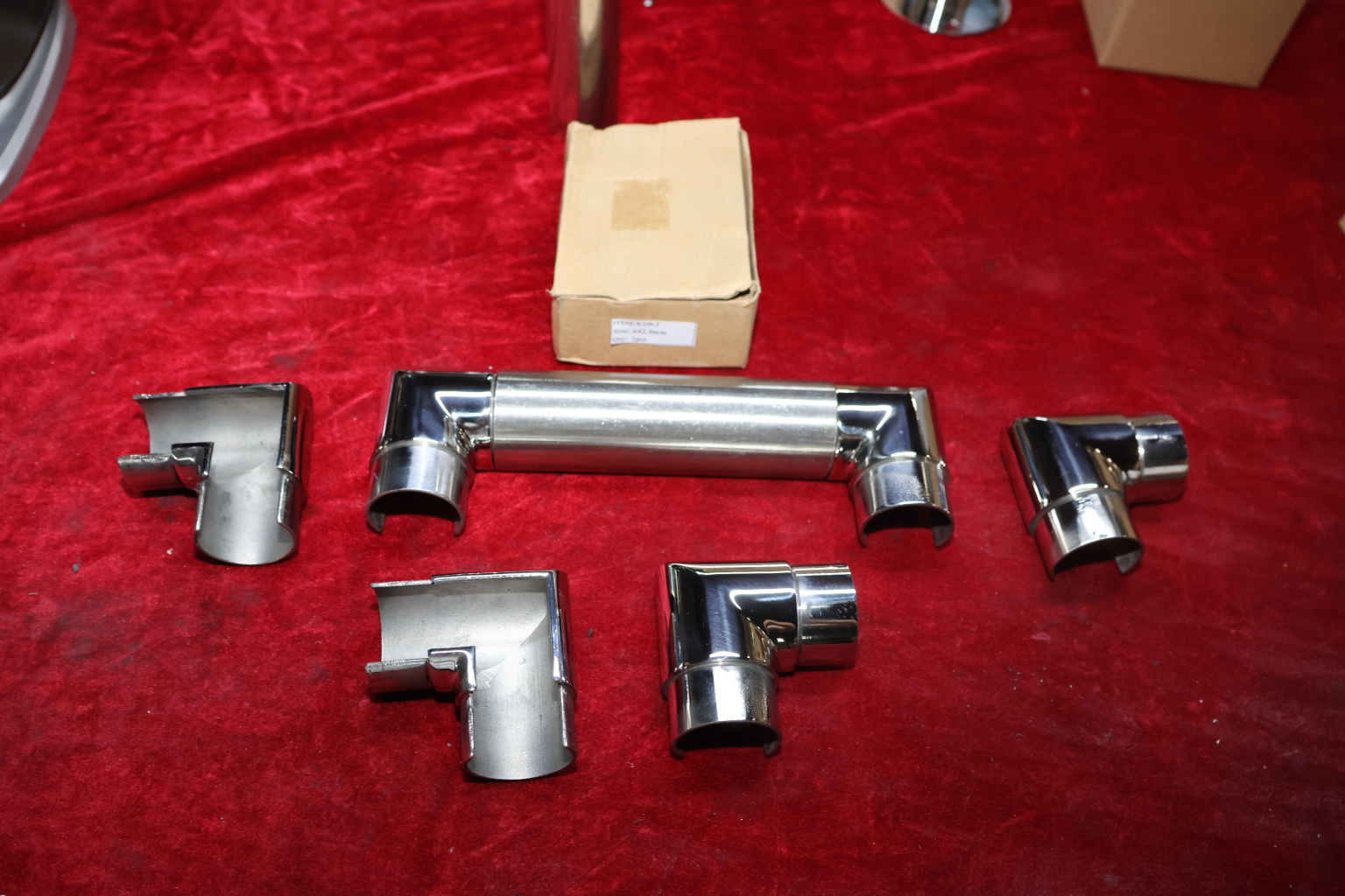 Отвод поручня с пазом Ø42.4 мм, 90°, с вставками для трубы. Деталь полированная, литая. Марка стали - AISI 304