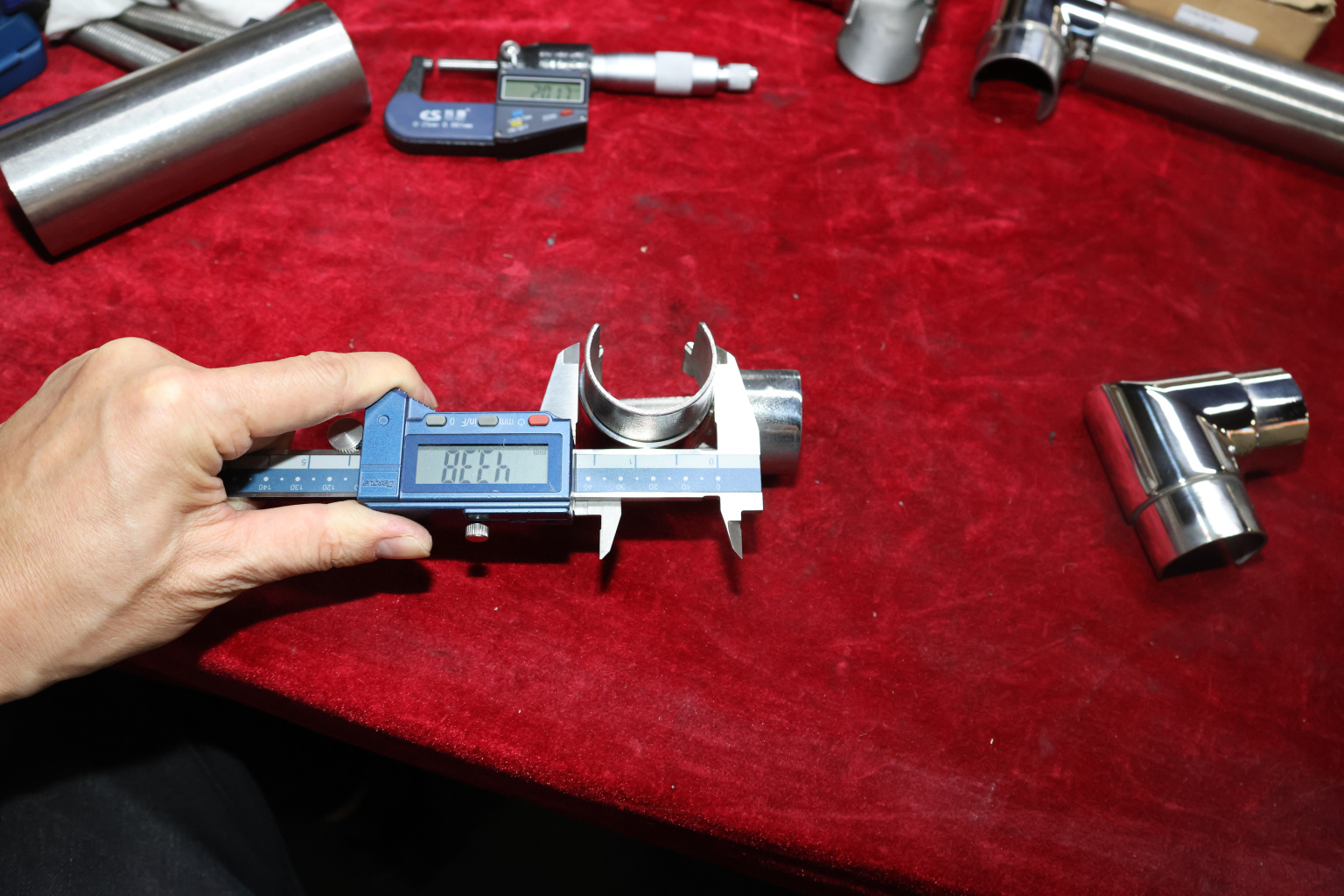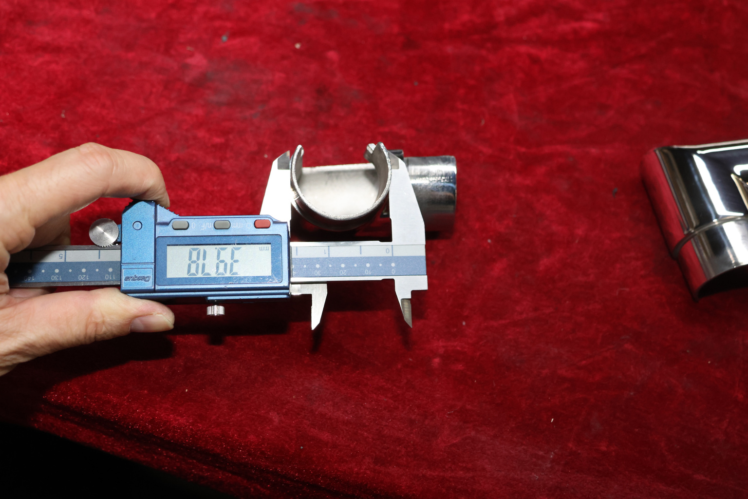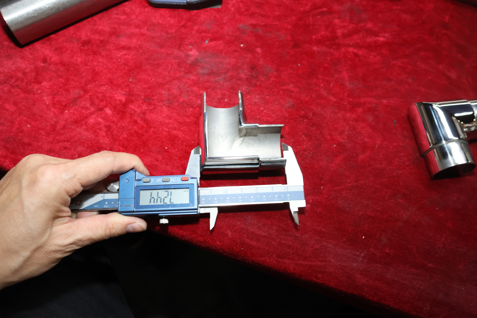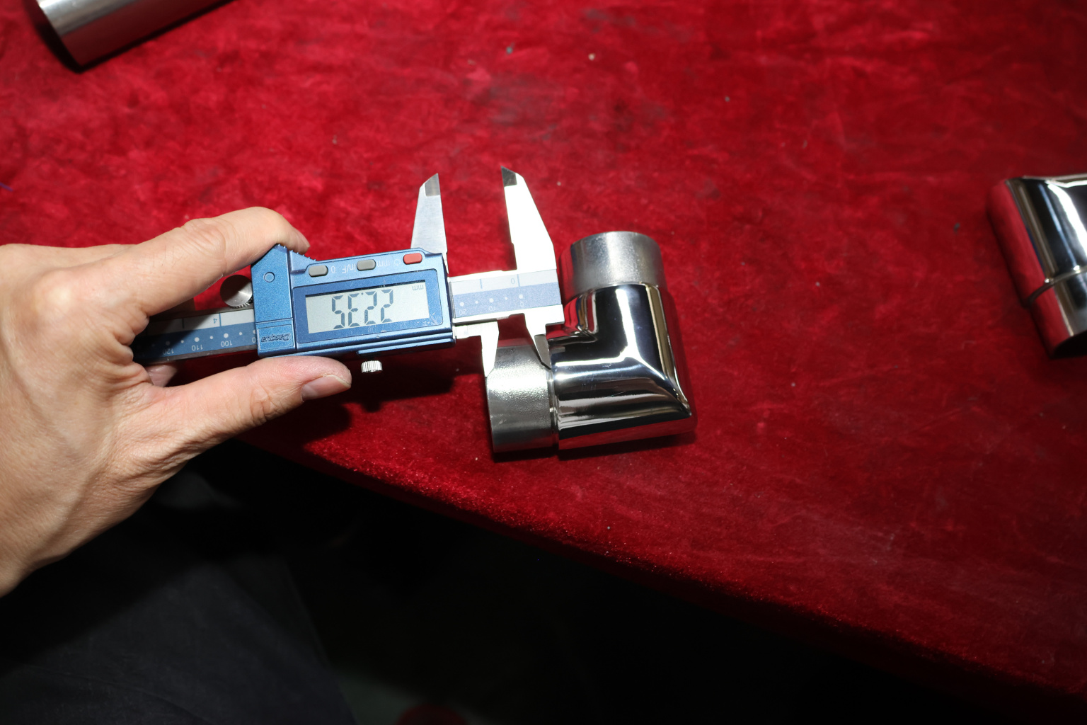 Отвод поручня с пазом Ø42.4 мм, 90°, с вставками для трубы. Деталь полированная, литая. Марка стали - AISI 304