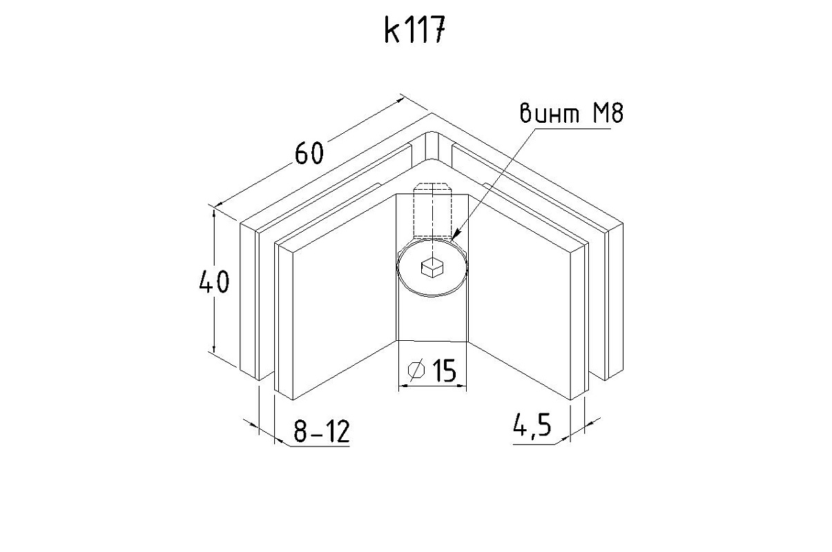 Соединитель стекол, угловой, 60х40, нержавеющая сталь AISI 304, полированная k117