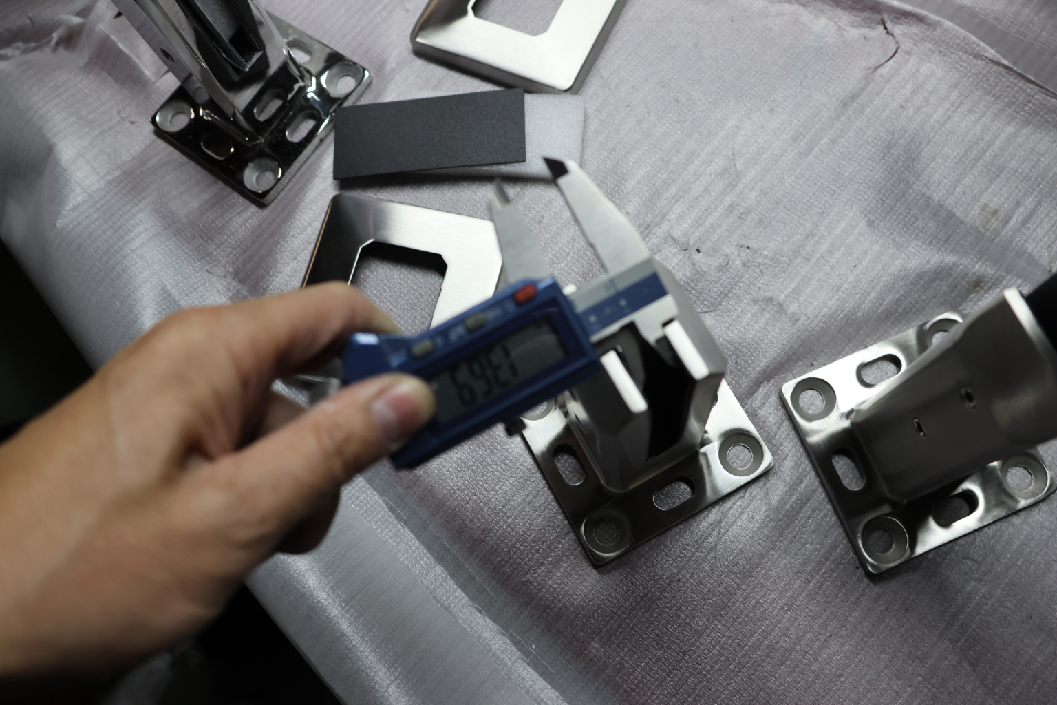 Стеклодержатель напольный 45х50х160 мм, литой, плоский, для стекла 10-12 мм, без сверления, нержавеющая сталь AISI 304, шлифованная k275-7