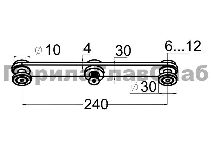 Стеклодержатель пластинчатый 3хМ8, по центрам 170х5 мм. Деталь полированная, шайбы 5 мм литые, под стекло 6-12 мм. Материал детали - AISI 304, под золото