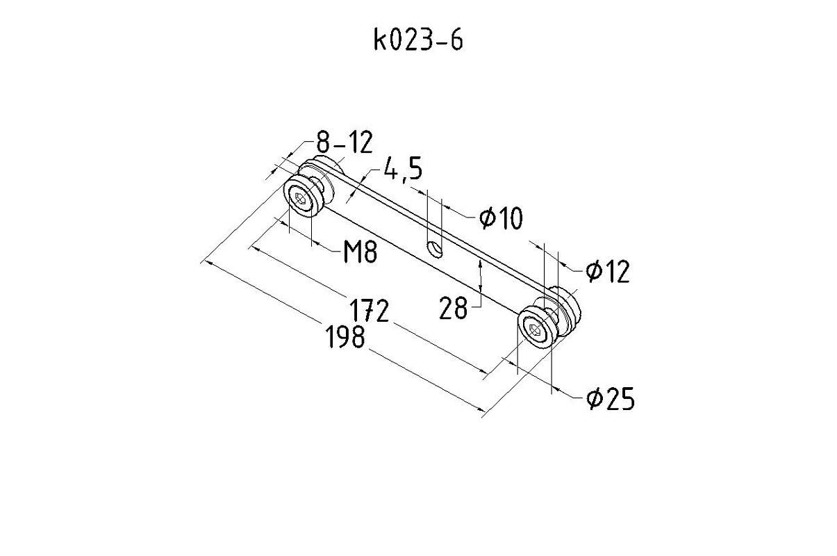 Стеклодержатель пластинчатый, под стекло 6-12 мм, полированный, по центрам 172х5 мм (AISI 304) k023-6