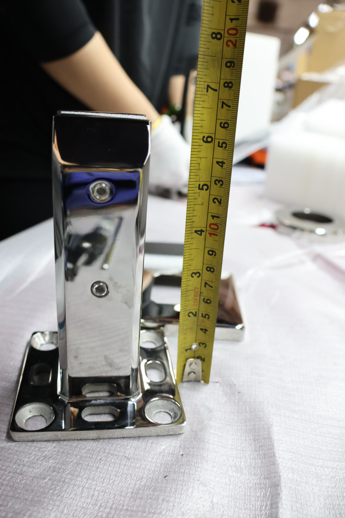 Стеклодержатель напольный 45х50х160 мм, для стекла 10-12 мм, литой, плоский, без сверления, нержавеющая сталь AISI 304, полированная k275-5