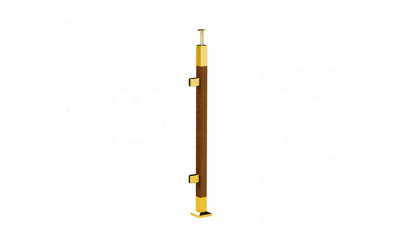 Готовая стойка 40х40х950 мм, деревянная, со вставками из нержавеющей стали 2х100 мм с 4 зажимными стеклодержателями, под золото k740-3-G купить в Нижнем Новгороде