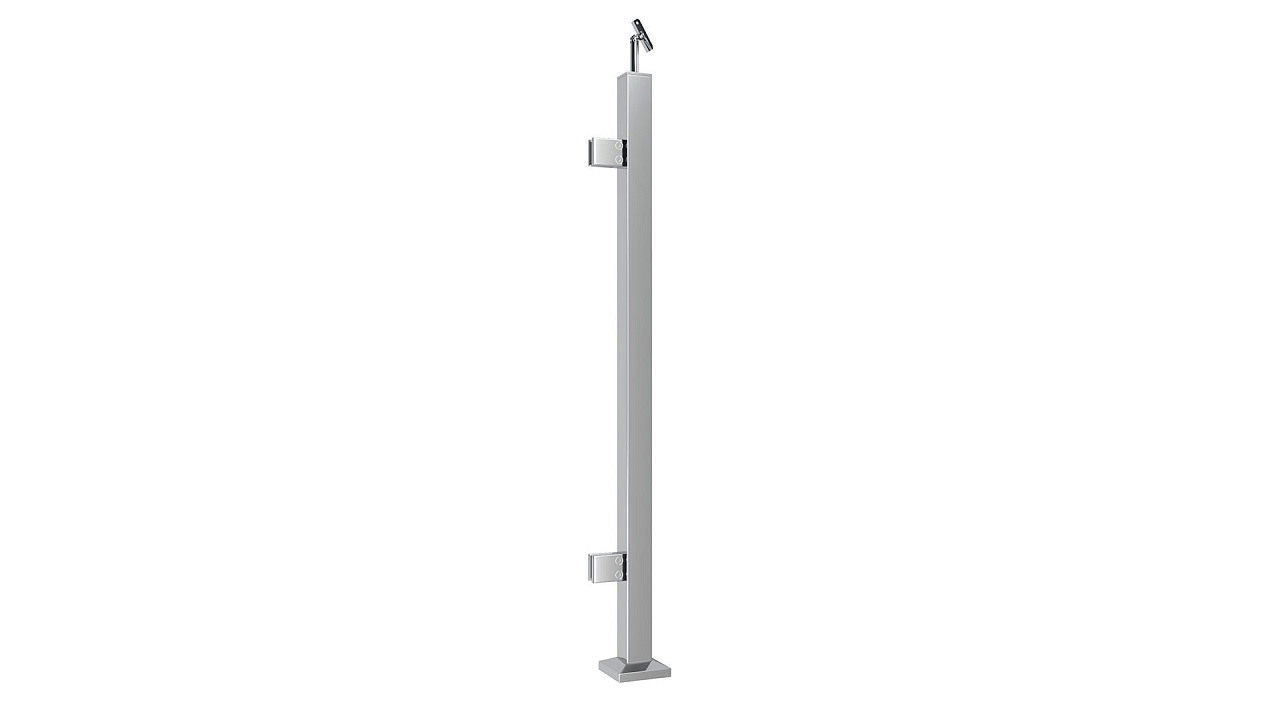 Cтойка квадратная 40х40: 2 литых квадратных стеклодержателя, полированная, высота 950 мм (aisi 304)