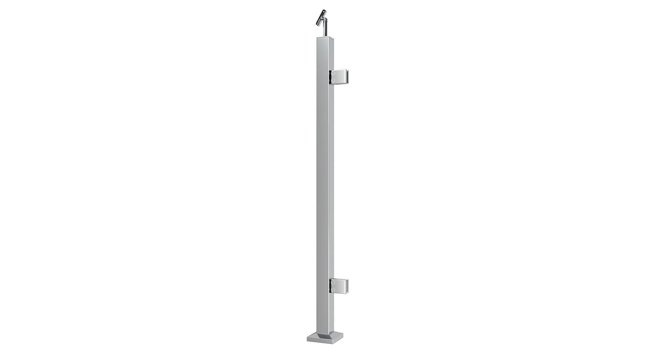 Стойка квадратная 40х40: 2 пластинчатых стеклодержателя, полированная, высота 950 мм (AISI 304) k749