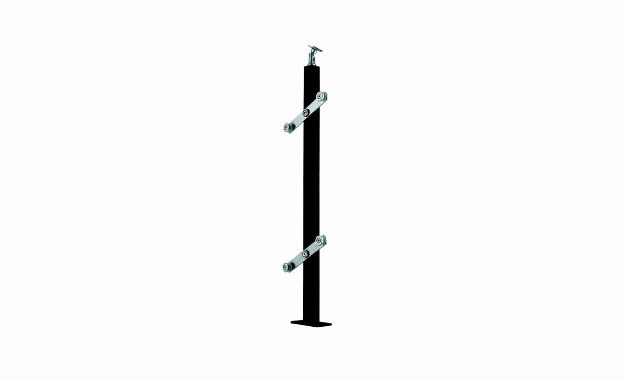 Стойка эксклюзивная из дерева с двумя пластинчатыми стеклодержателями, крепление в пол, регулируемый ложемент (AISI 304) k777