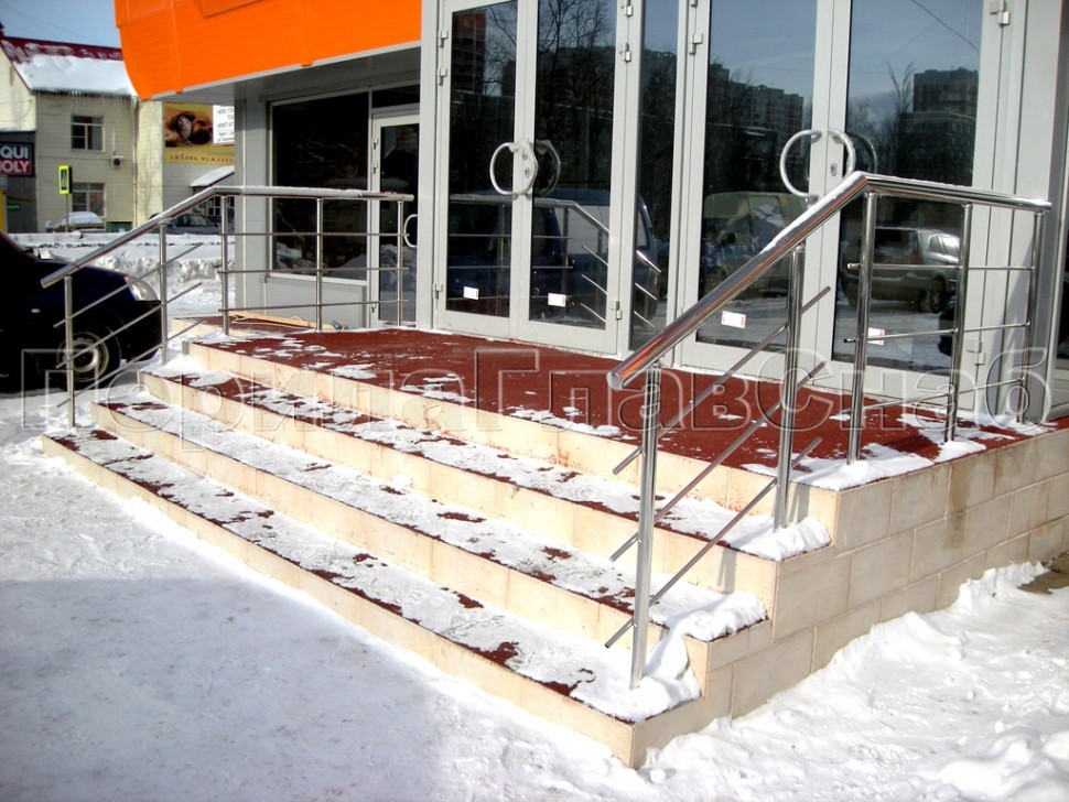 В крупнейшем торговом центре г. Щербинка была установлена целая сеть ограждений из нержавеющей стали, это и перила на входе, и пандусы с ограждениями и поручнями для маломобильной категории граждан, в частности инвалидов и детей.
