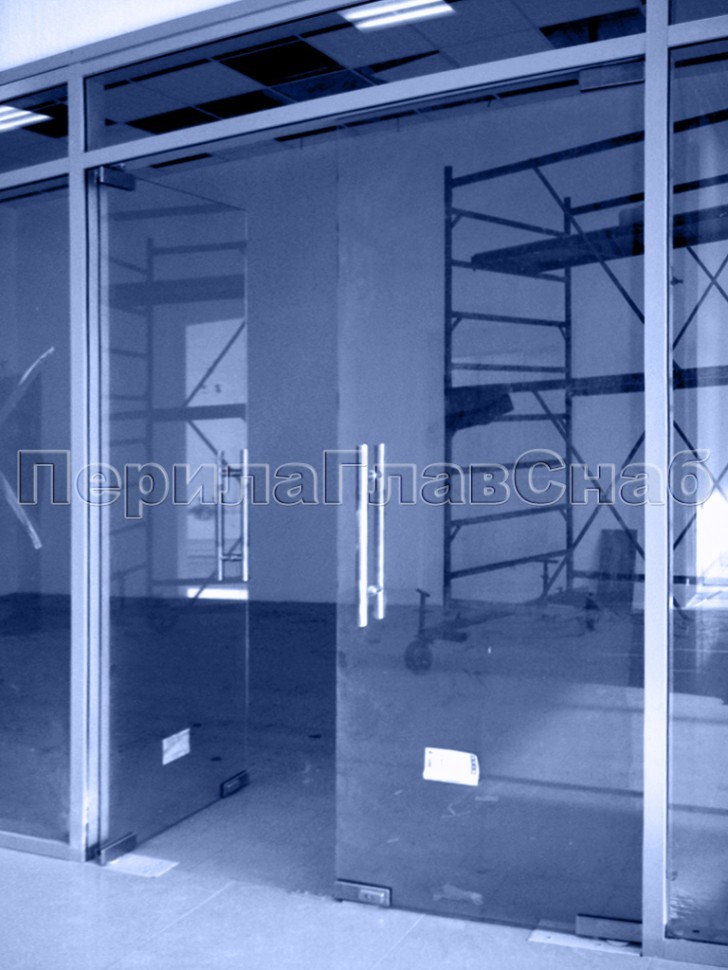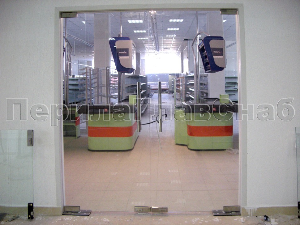А на входе в торговый зал комплекса были установлены стеклянные маятниковые двери распашного типа на специальной фурнитуре серии «Классика».