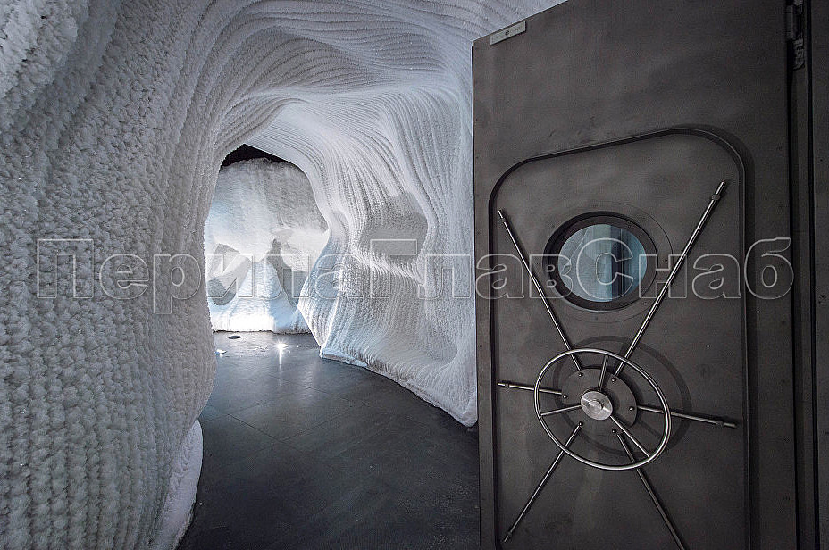 Вход в пещеру – через шлюз, который мгновенно создает ощущение пребывания на полярной станции. Переходной шлюз представляет собой металлический каркас из стали - 3, обшитый с двух сторон металлическими нержавеющими листами AISI304.
