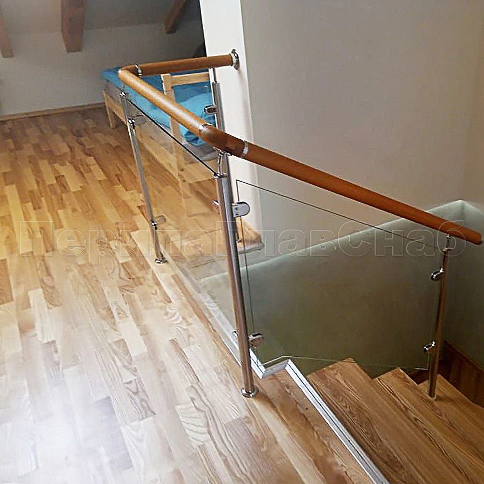 Дерево и стекло в нашем современном мире помогает создать пространство естественной окружающей среды Наш заказчик остался доволен конструкцией стеклянных ограждений, что конечно же очень нас радует. Дубовый поручень мы затонировали в цвет ступеней по каталогу SAYERLAC, завязка поручня была выполнена с помощью комплектующих из нержавеющей стали. Конструктив ограждений: ограждения из полированной из нержавеющей стали с закаленным стеклом, толщиной 8 мм.