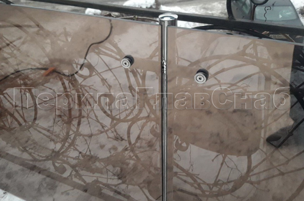В ПерилаГлавСнаб поступил интересный запрос в зимний период времени. Необходимо было оградить от ветра и от лишних глаз летнюю террасу в Митинском районе города Москвы. Правильный подход «готовь сани с лета» позволит уже весной насладиться чаепитием и прочтением книги на открытом воздухе. У клиента уже стояло ограждение предусмотренное застройщиком, которое по нормам демонтировать строго запрещено. Нашими инженерами было предложено конструктивное решение в виде ограждения из закаленного стекла на стойках из нержавеющей стали AISI 304. Стекло держится на пластинчатых стекло держателях, технология которых позволяет намертво закрепить его. А это значит, что данный вид ограждения выдержит любую ветровую нагрузку. Стойки монтировали прямо в бетонное основание террасы на специальную зимнюю химию, что обеспечивало скорейшее застывание клеевого состава. Точная и выверенная работа инженера-конструктора позволила произвести безошибочный замер стекол на шестнадцати погонных метрах. Еще одной задачей проекта являлась непросматриваемость балкона. Была подобрана специальная двусторонняя защитная пленка, которую наносили на стекло в заводских условиях с гарантией. Со стороны улицы пленка дает эффект зеркала стеклу. Т.е. абсолютно не видно что происходит за ограждением. А со стороны террасы пленка имеет бронзовый оттенок, который перекликается с отделочными материалами стен и просматривается все, что происходит во дворе дома. Очень лаконичное и продуманное решение стоимостью всего 13 800 рублей за погонный метр.