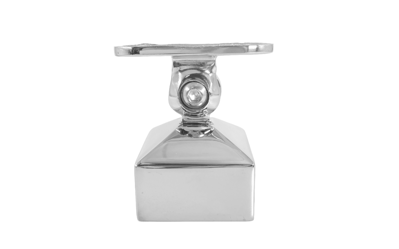 Наконечник на стойку 40х40, с ложе под ПЛОСКОСТЬ. Деталь с регулируемым ложементом, что позволяет монтировать её как и на горизонтальных площадках, так на лестничных маршах.