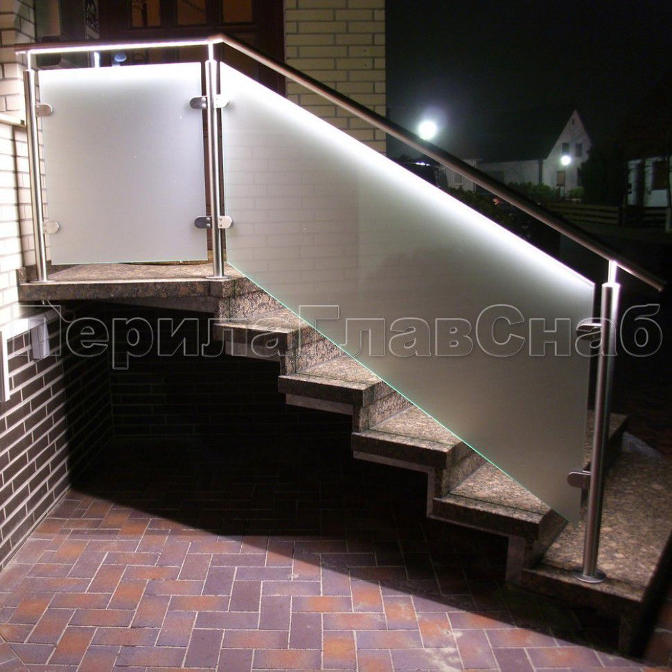 При заказе стеклянных ограждений с подсветкой, подсветку можно установить на дополнительный выносной поручень.