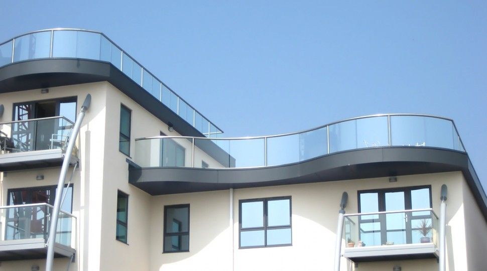 Стеклянные перила на крышу могут быть различной высоты (согласно требованию ГОСТов по ограждению крыш и балконов). Высота стеклянных перил зависит от высотности здания, наличия парапета и его высоты.