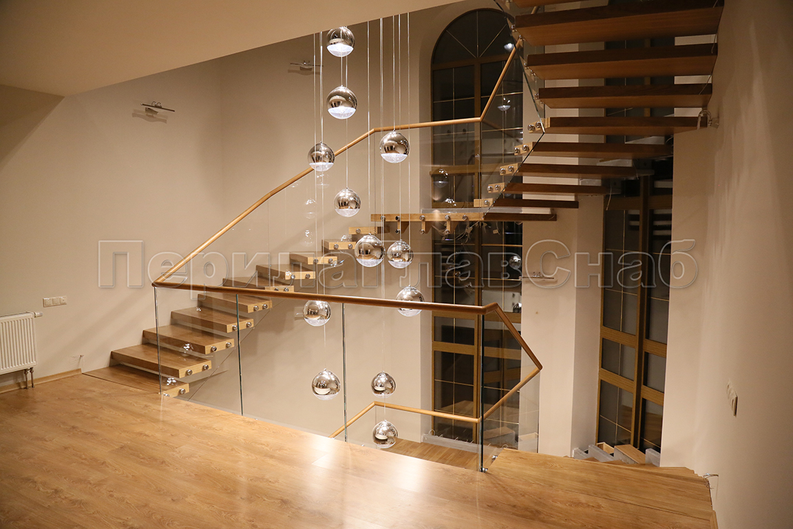 Ограждение с деревянным поручнем с зажимными стеклодержателями и стойками в Нижнем Новгороде. Готовые проекты ПерилаГлавСнаб - фото 1 Ограждение с деревянным поручнем с зажимными стеклодержателями и стойками в Нижнем Новгороде. Готовые проекты ПерилаГлавСнаб - фото 2