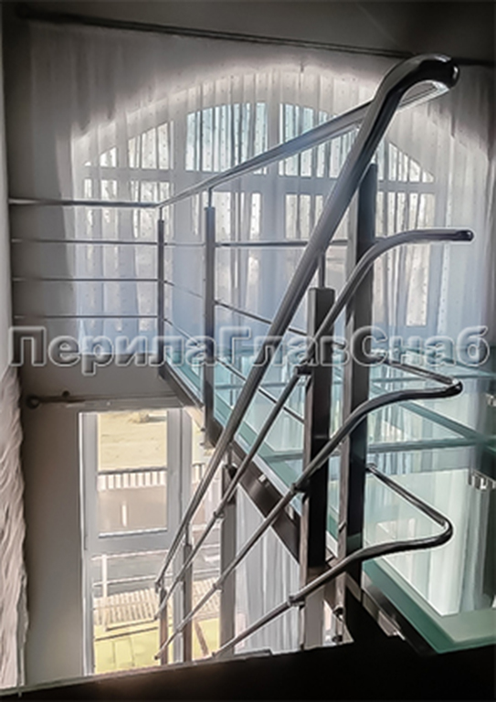 Стеклянные ограждения винтовой лестницы и баллюстрады в Нижнем Новгороде. Готовые проекты ПерилаГлавСнаб - фото 1