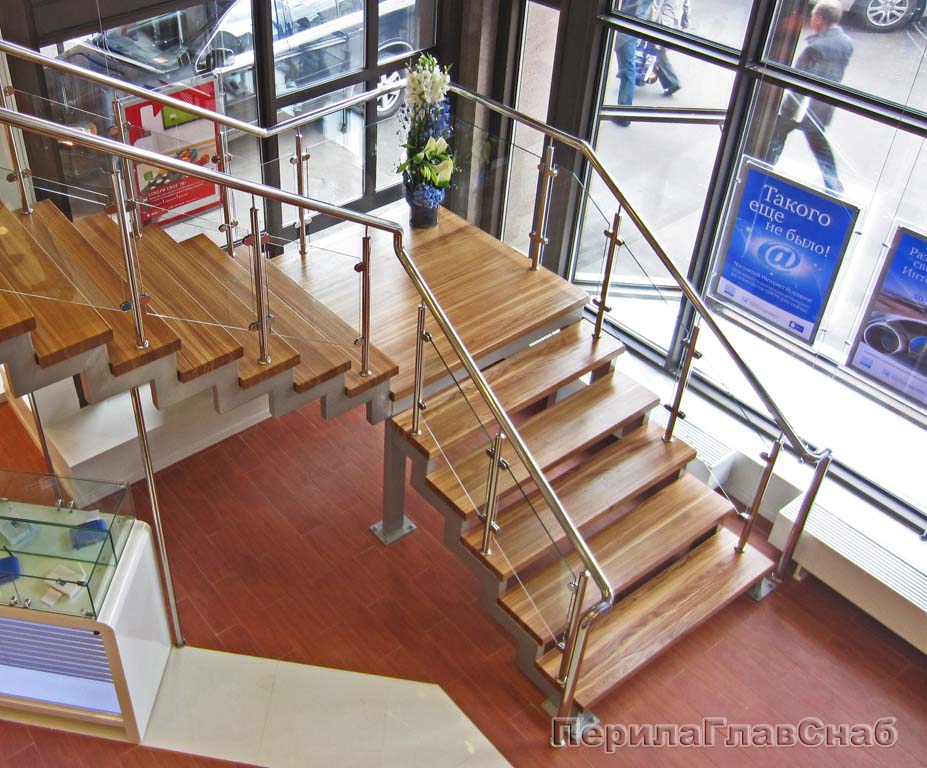Ограждения лестницы без поручня с зажимными стеклодержателями и стойками