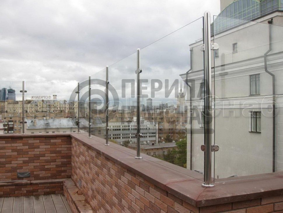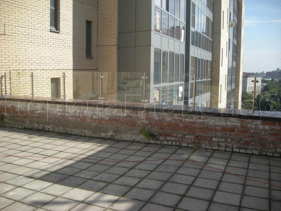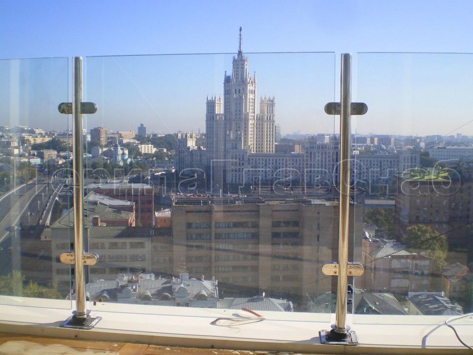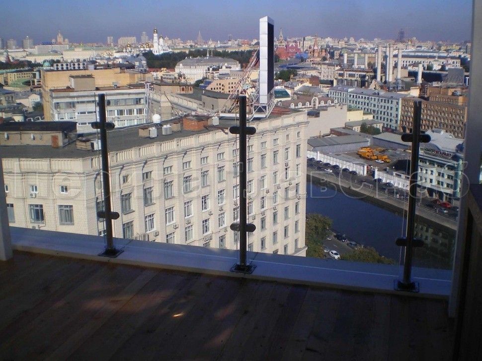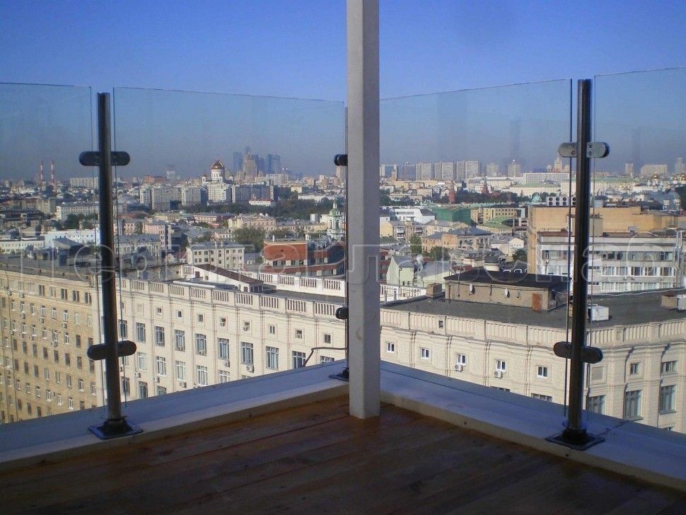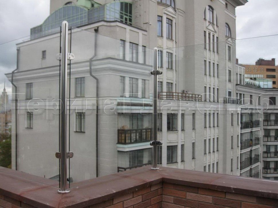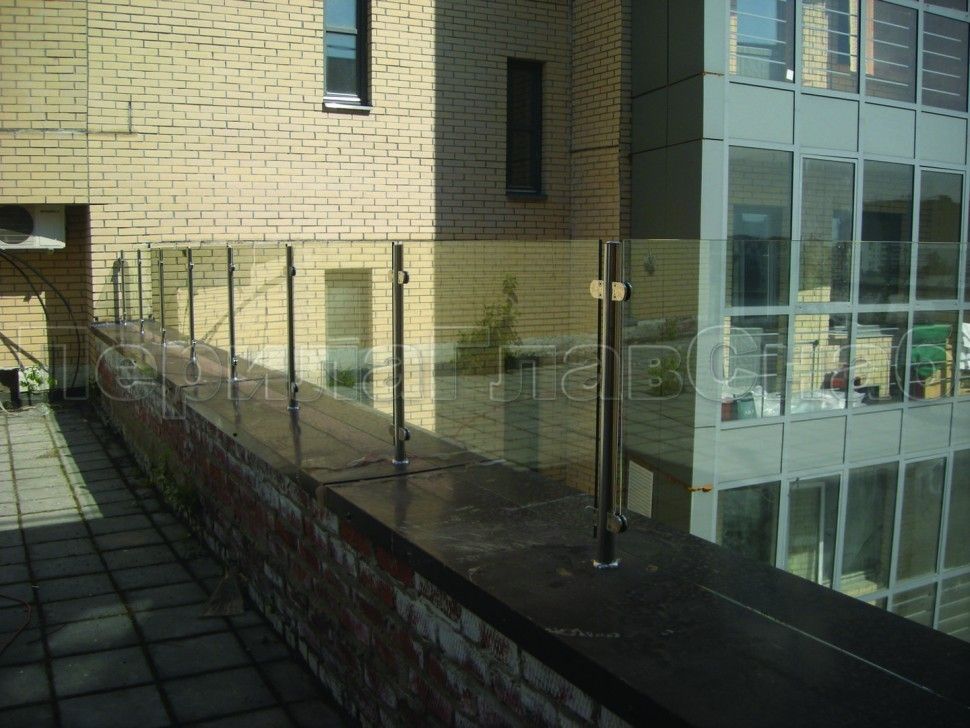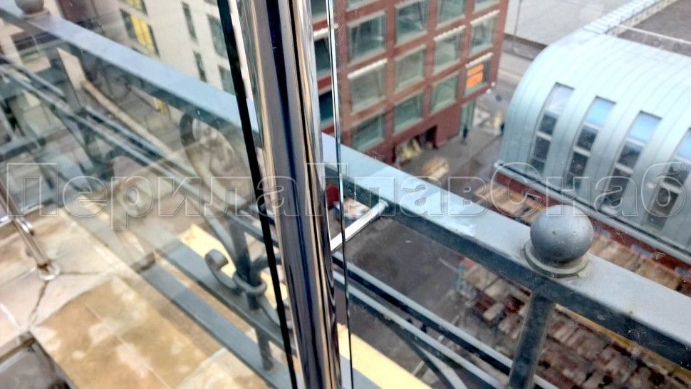 Ограждения лестницы без поручня с зажимными стеклодержателями и стойками