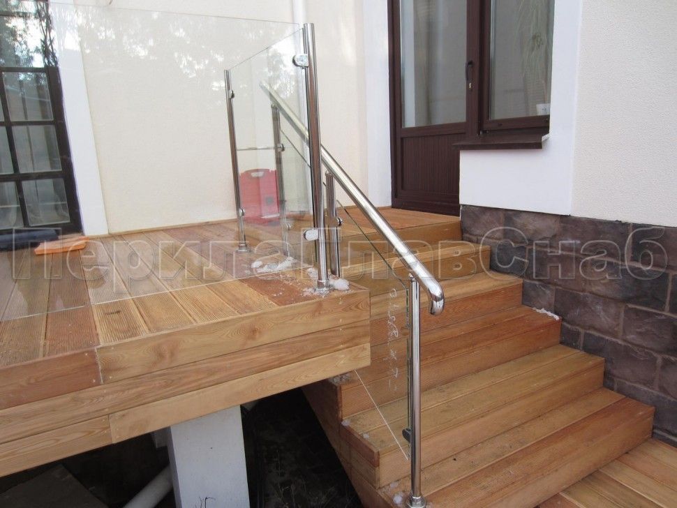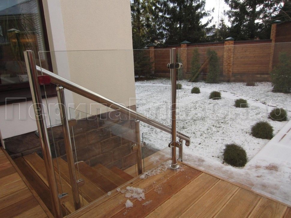Ограждение для лестницы из нержавейки с зажимными стеклодержателями для крыльца