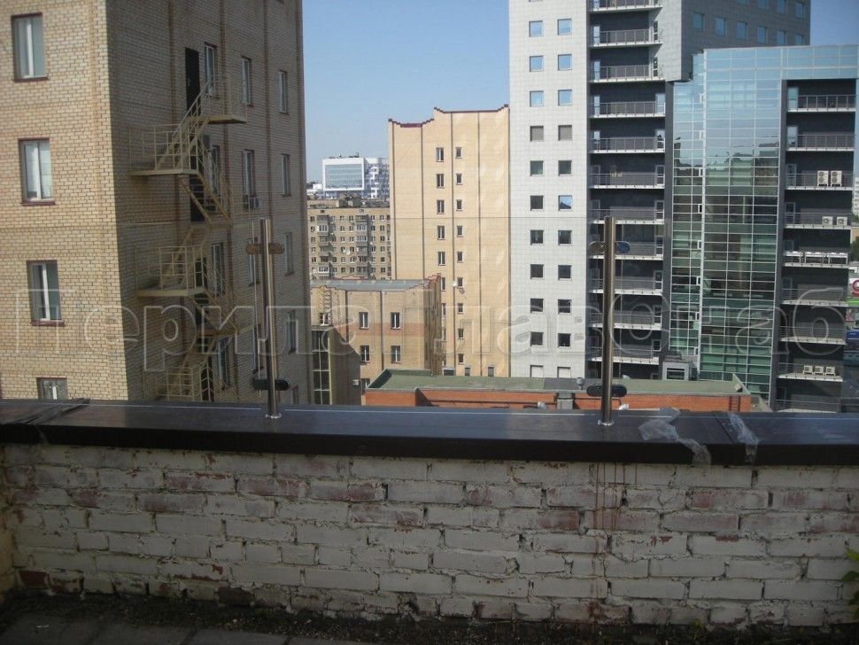 Ограждения для лестницы с поручнем на выносе с зажимными стеклодержателями и квадратными стойками