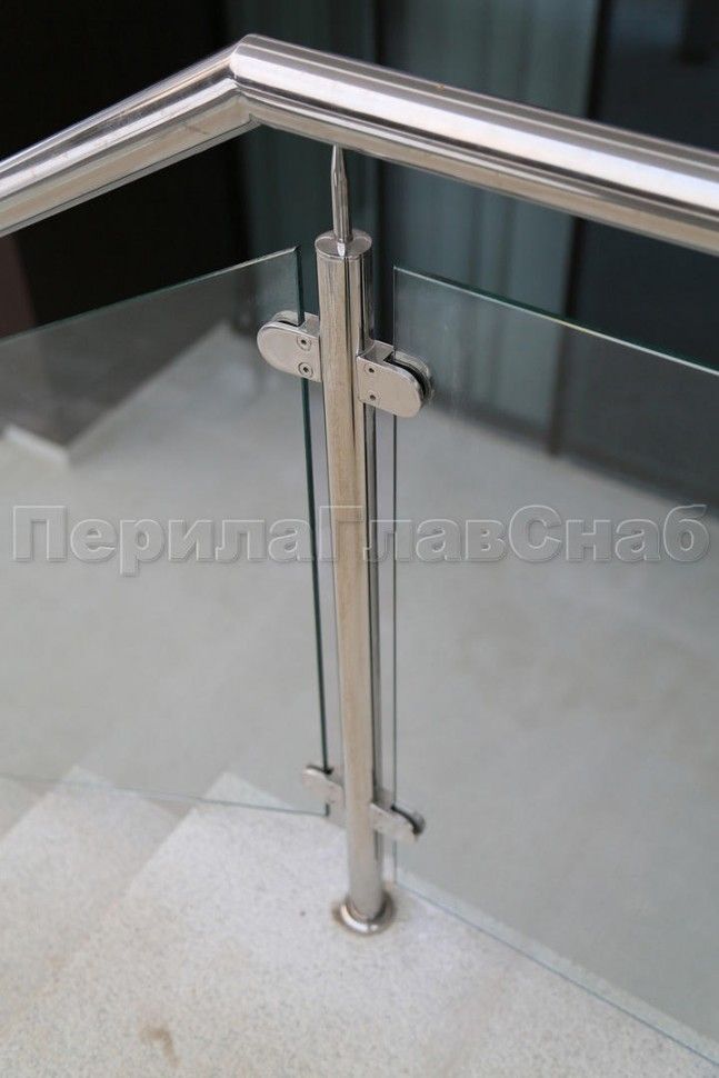 Ограждение для лестницы из нержавейки с зажимными стеклодержателями для крыльца