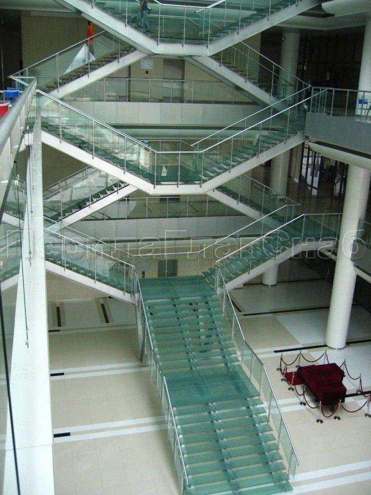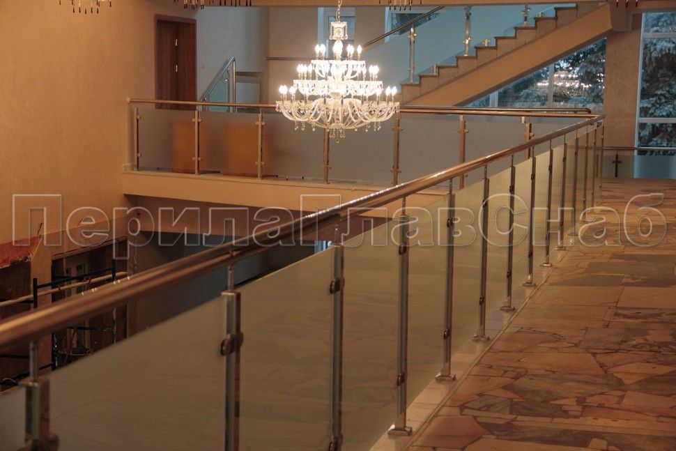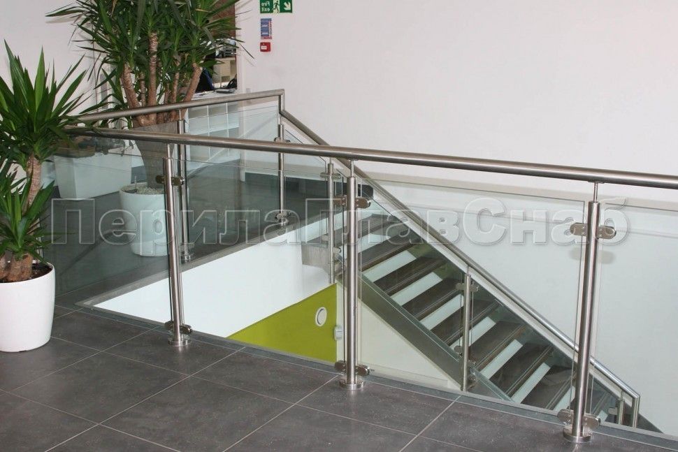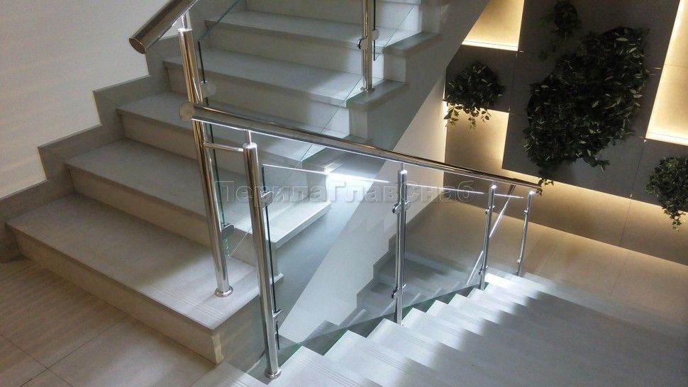 Ограждения лестницы без поручня с зажимными стеклодержателями и стойками