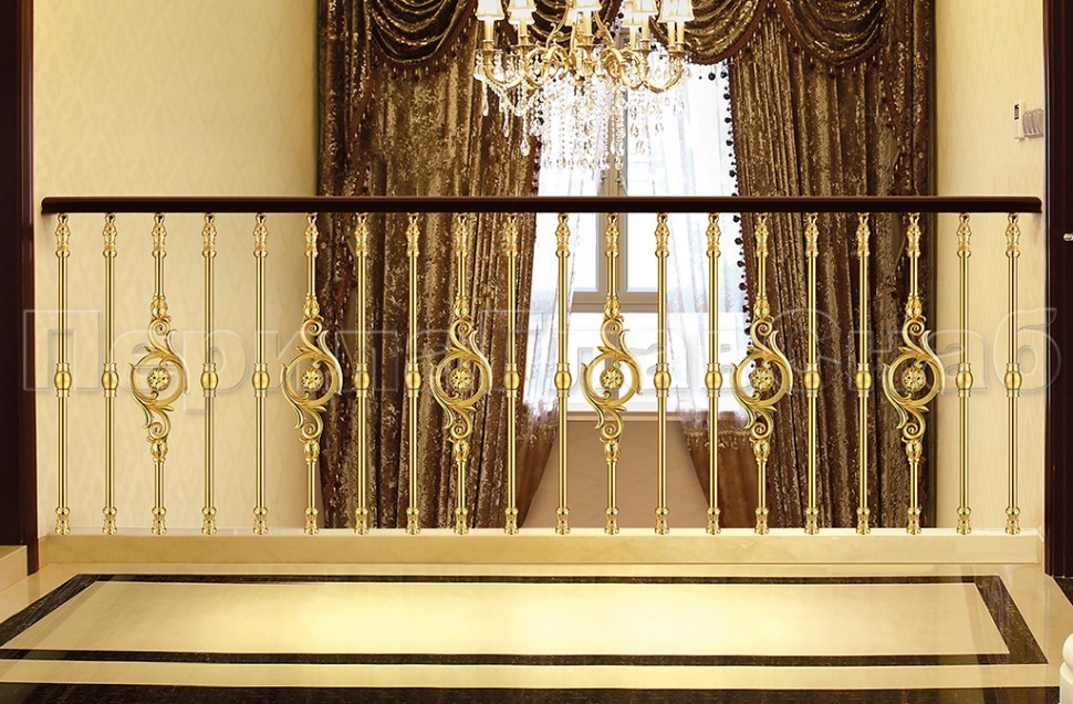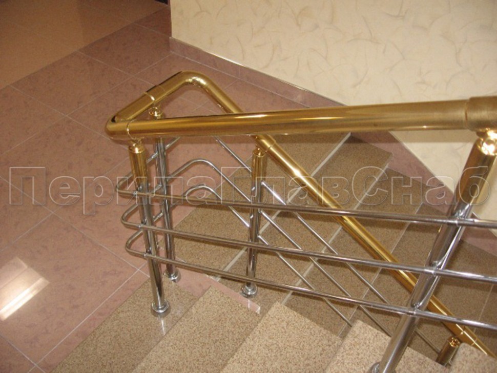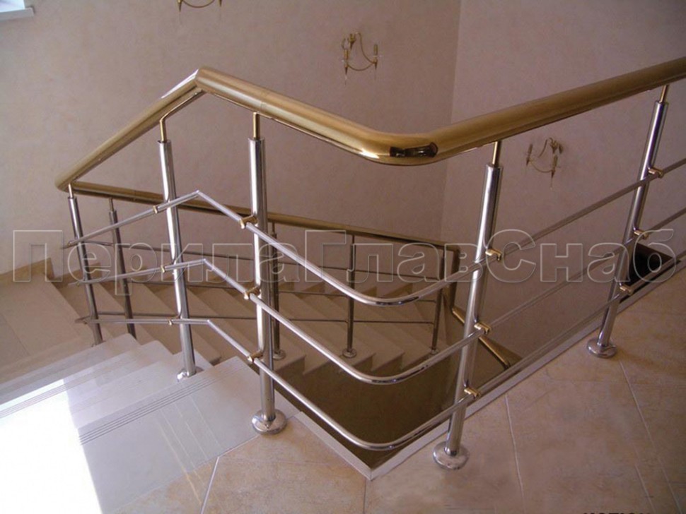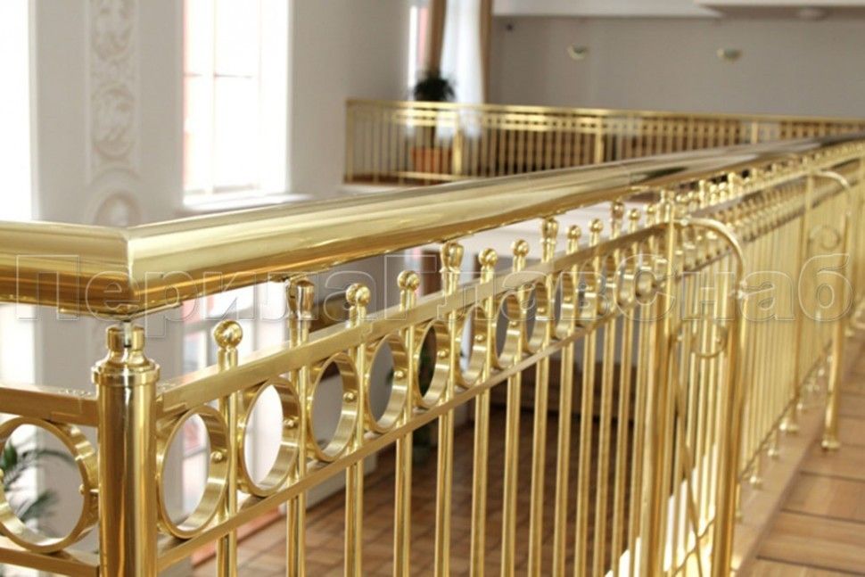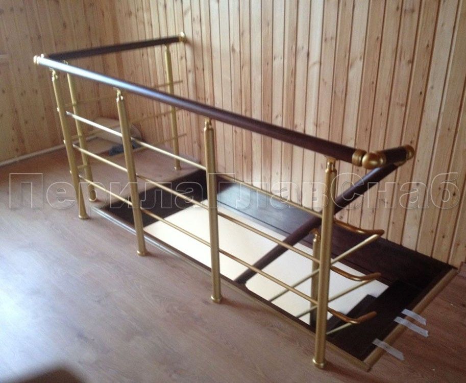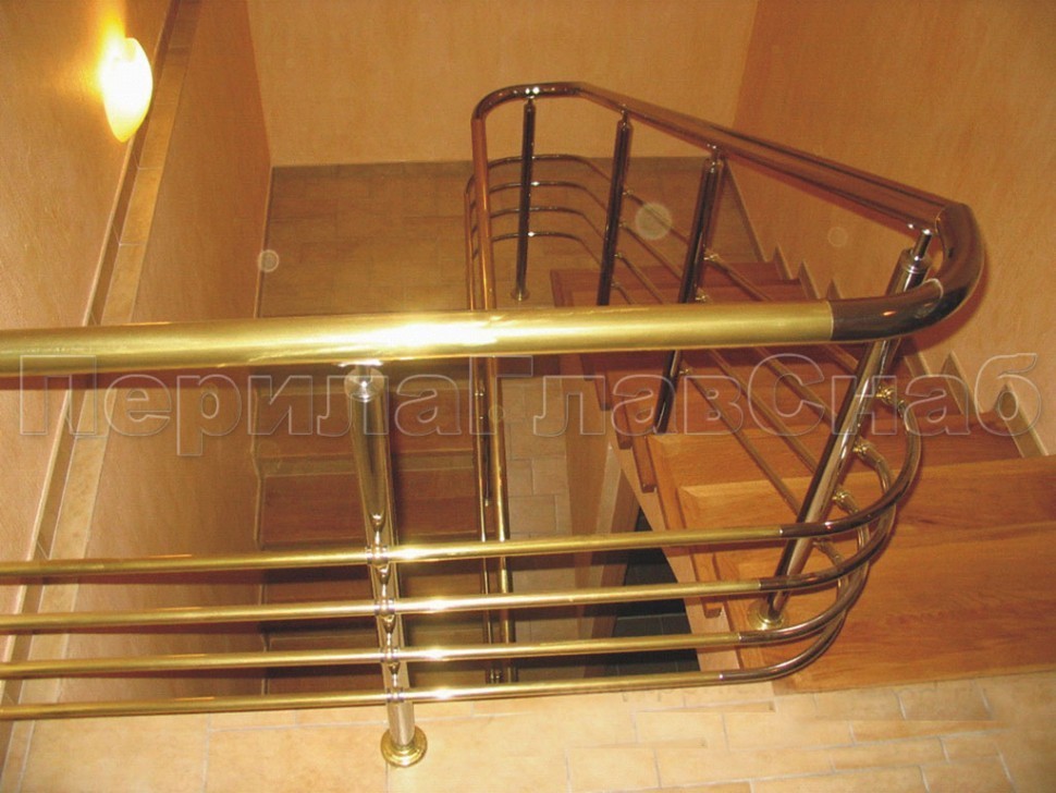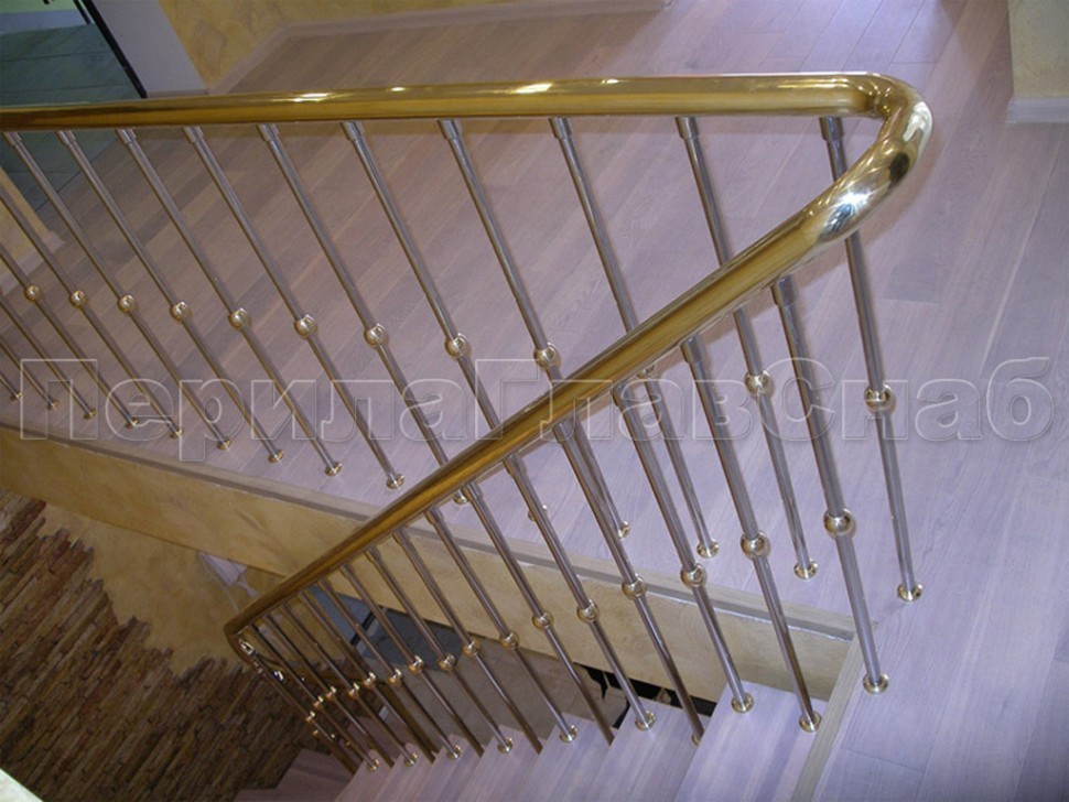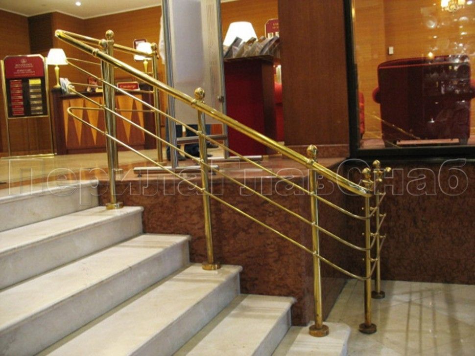 Лестничное ограждение с тремя ригелями и поручнем из латуни