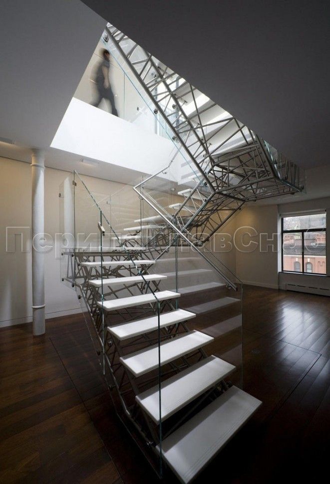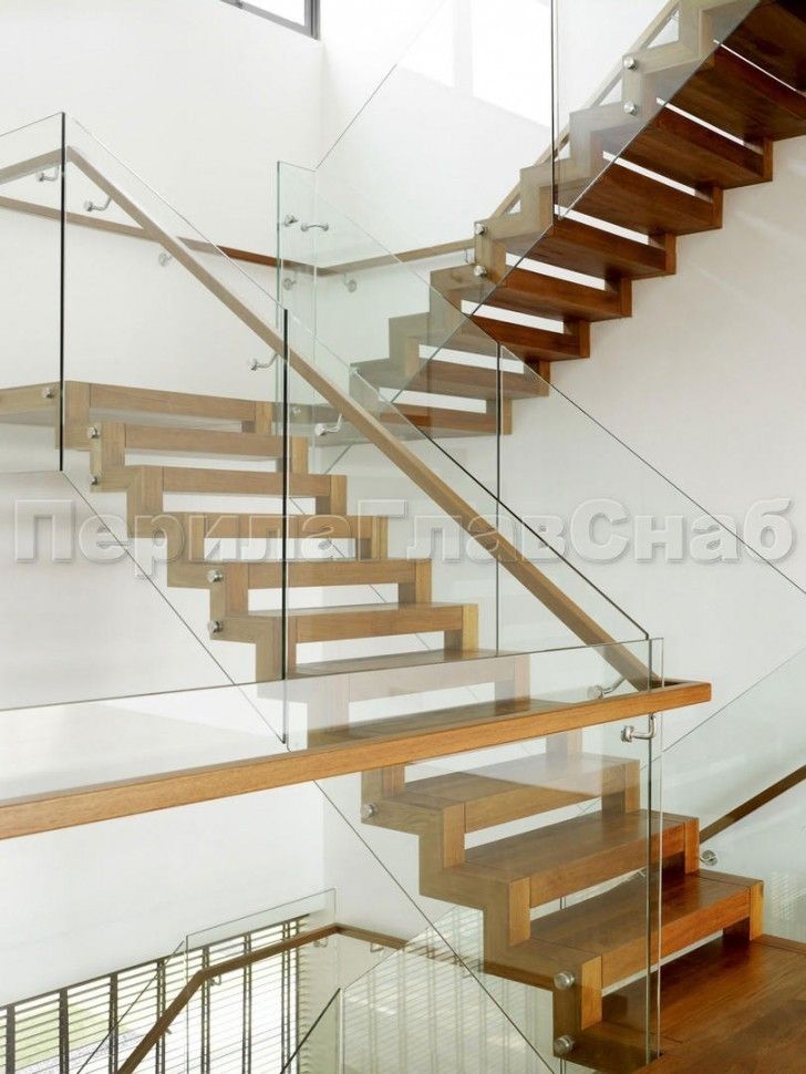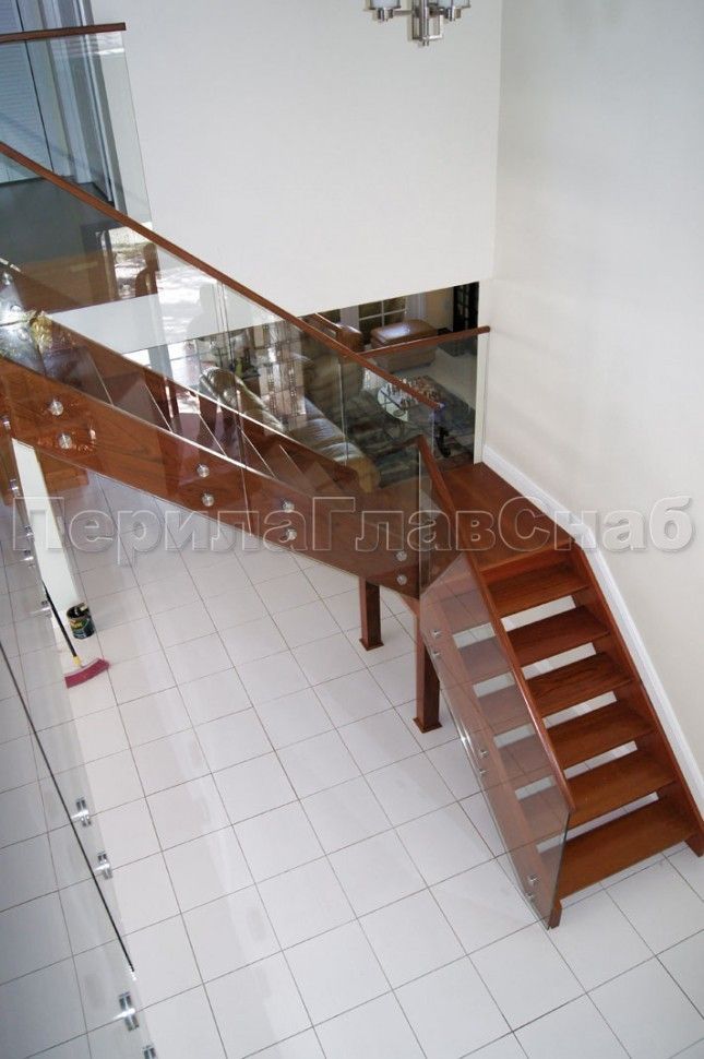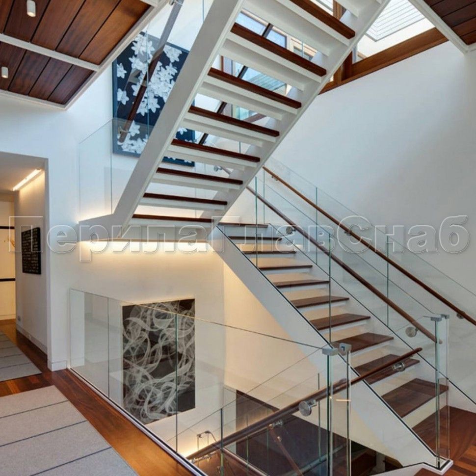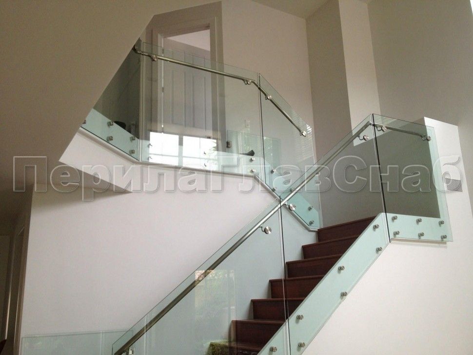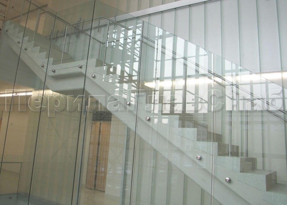 Ограждения лестницы без поручня с зажимными стеклодержателями и стойками