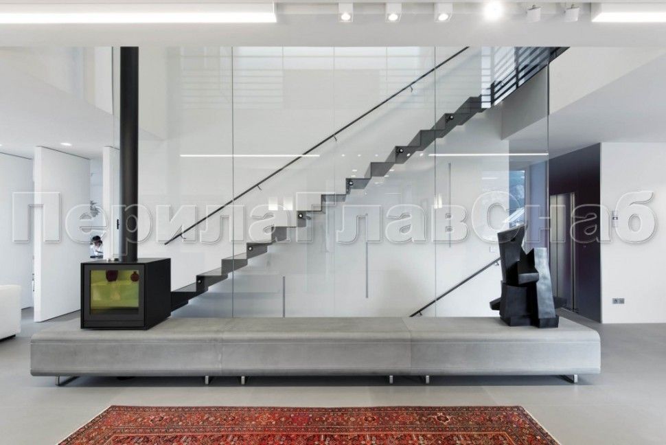 Ограждения лестниц на несущем стекле с подсветкой