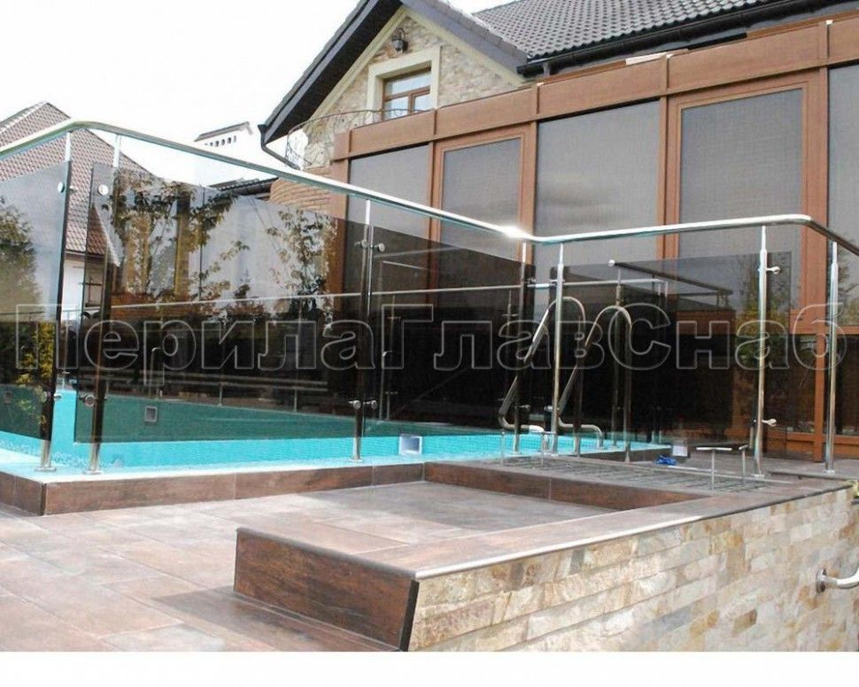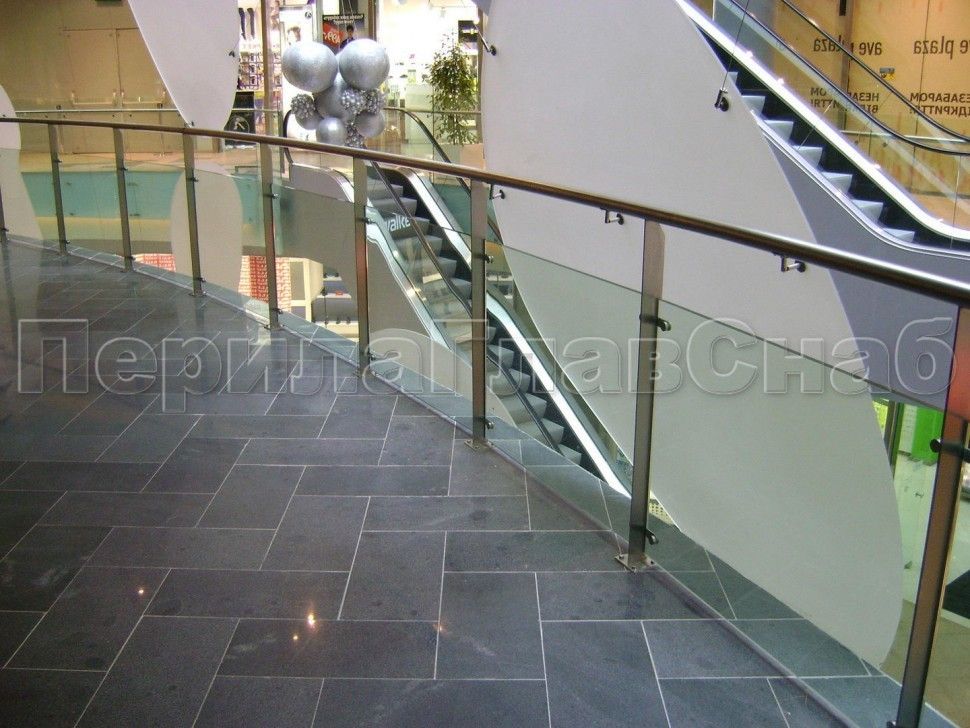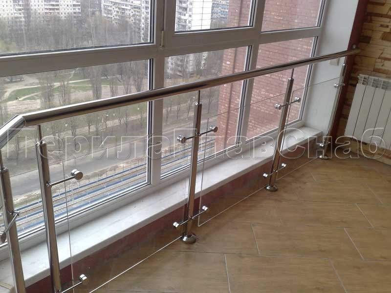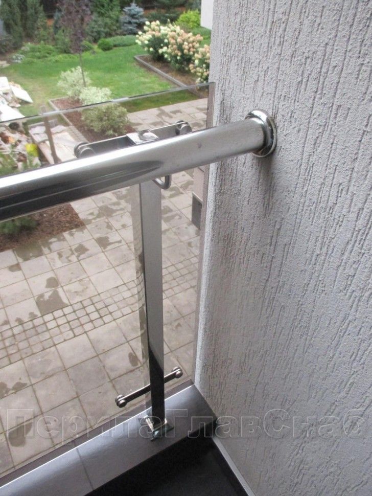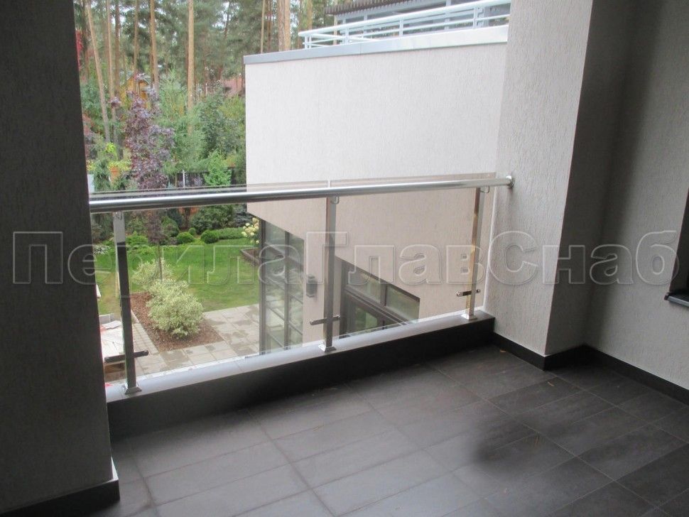 Можно выбрать ограждение из нержавейки с зажимными стеклодержателями.
