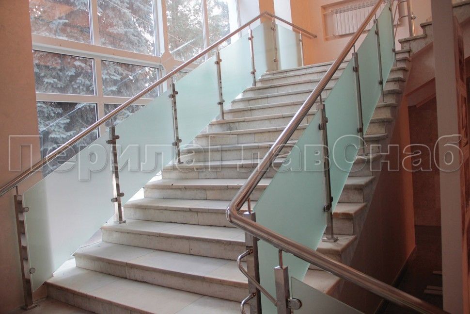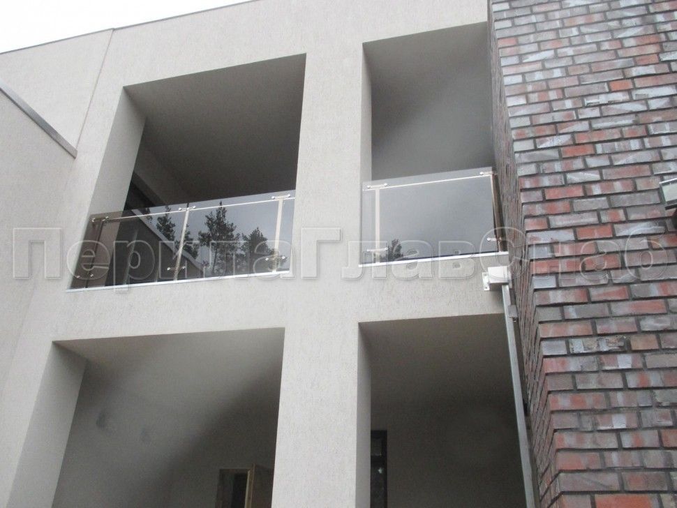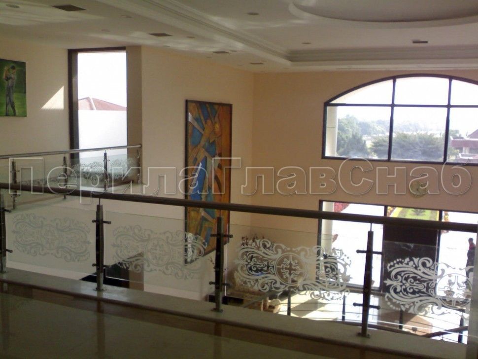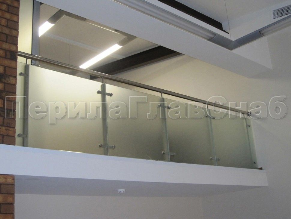 Красивая опция - частичная матировка нижней части несущего стекла. Делают обычно там, где стекло примыкает к лестничному маршу или перекрытию.