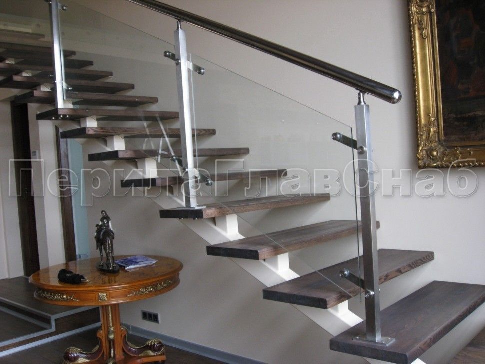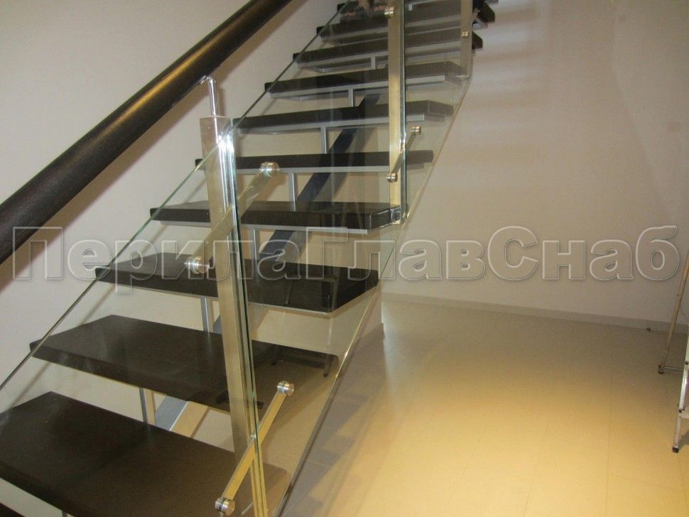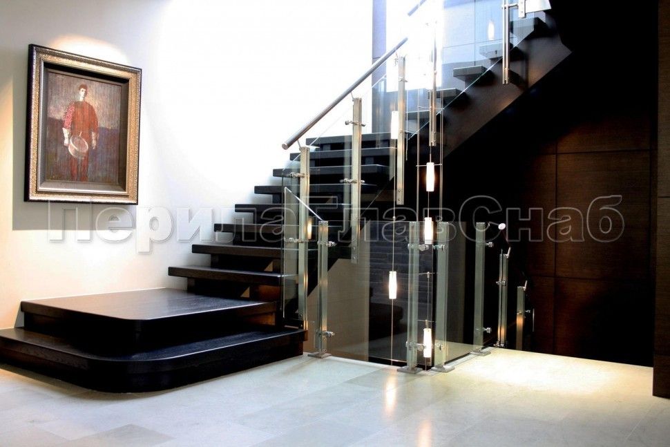 Ограждения лестницы без поручня с зажимными стеклодержателями и стойками