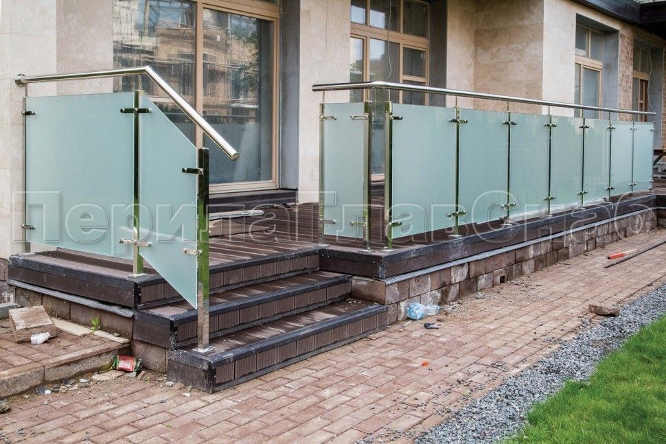 Ограждение для лестницы из нержавейки с зажимными стеклодержателями для крыльца